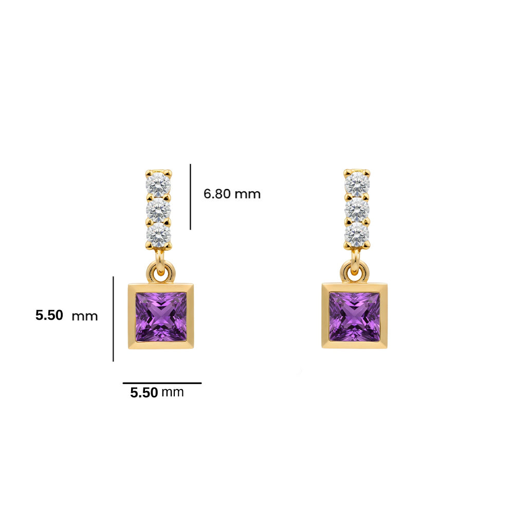 14K Gold Amethyst Square Earrings