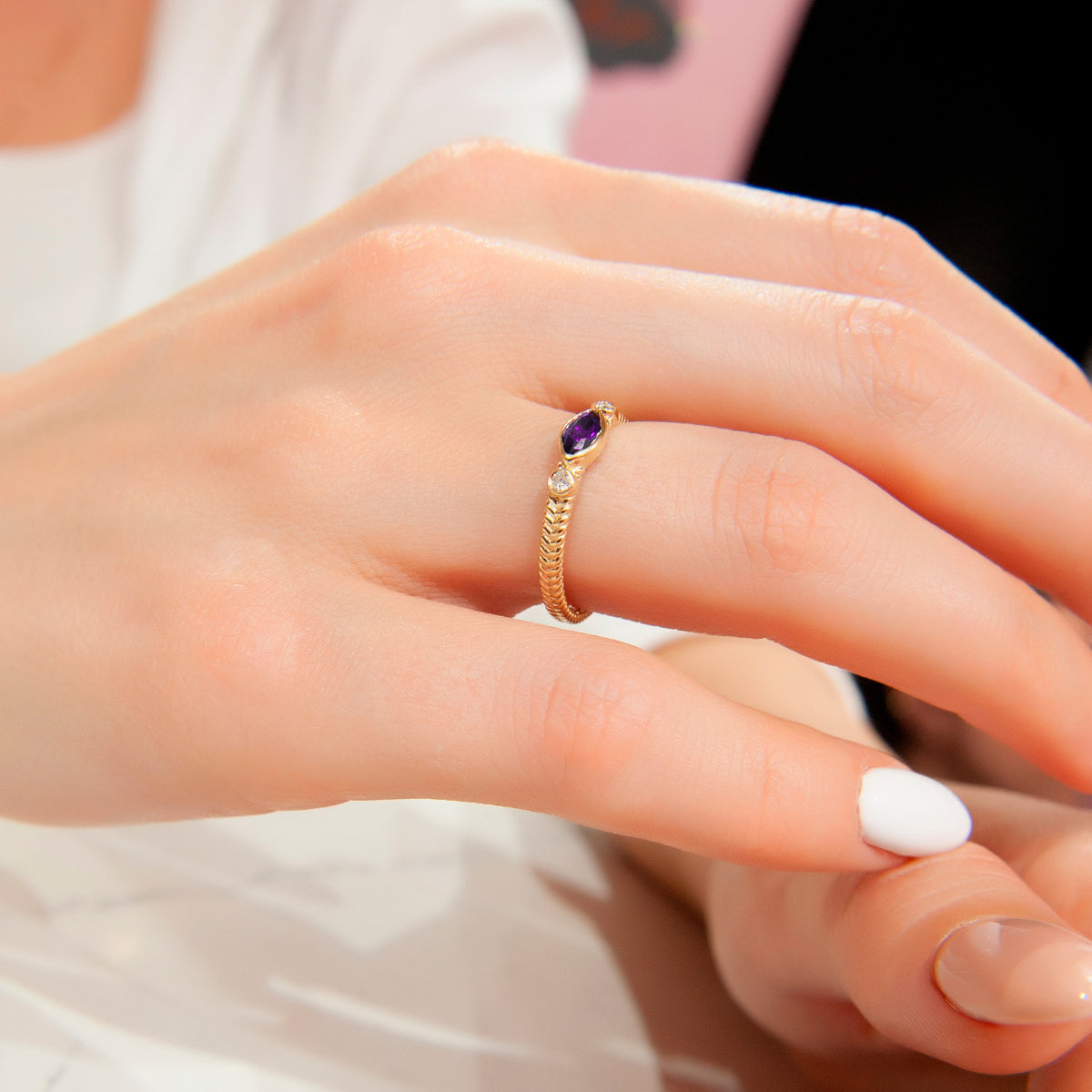 • Avoid contact with harsh chemicals, perfumes, and household cleaners, as they may affect both the diamond and the metal.
