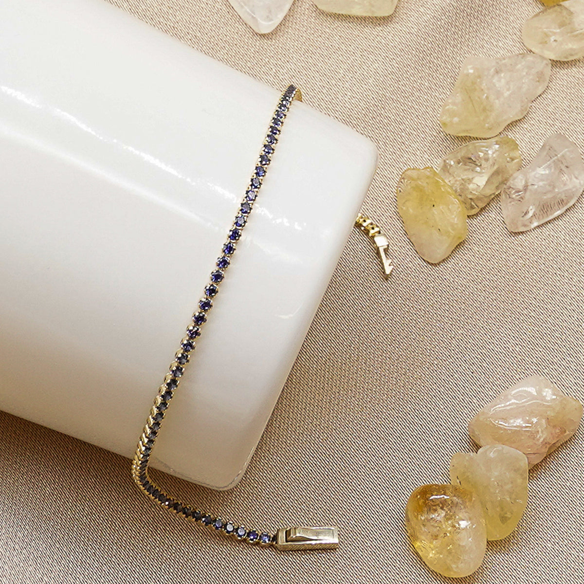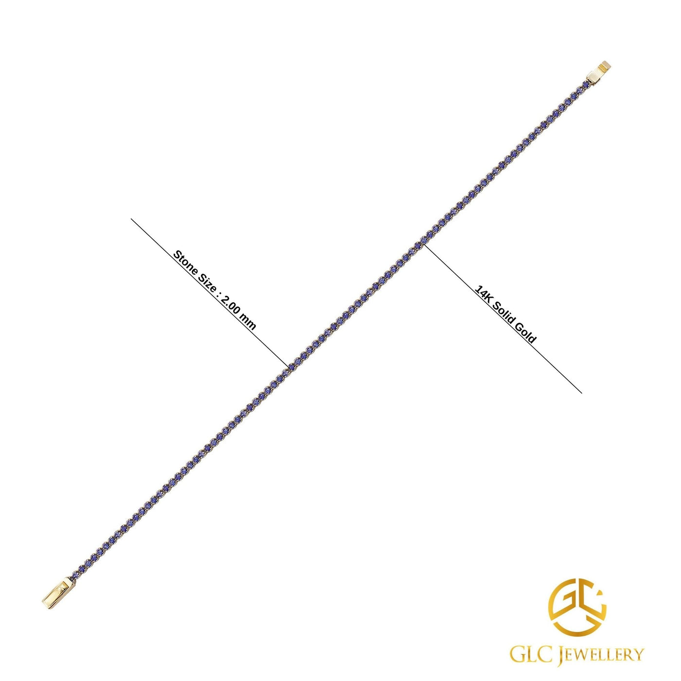 14K Gold Tennis Bracelet, Gold Bracelet, Purple Bracelet
