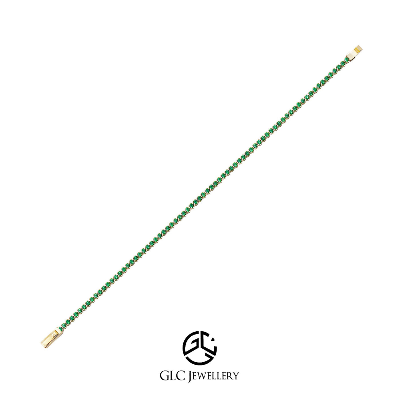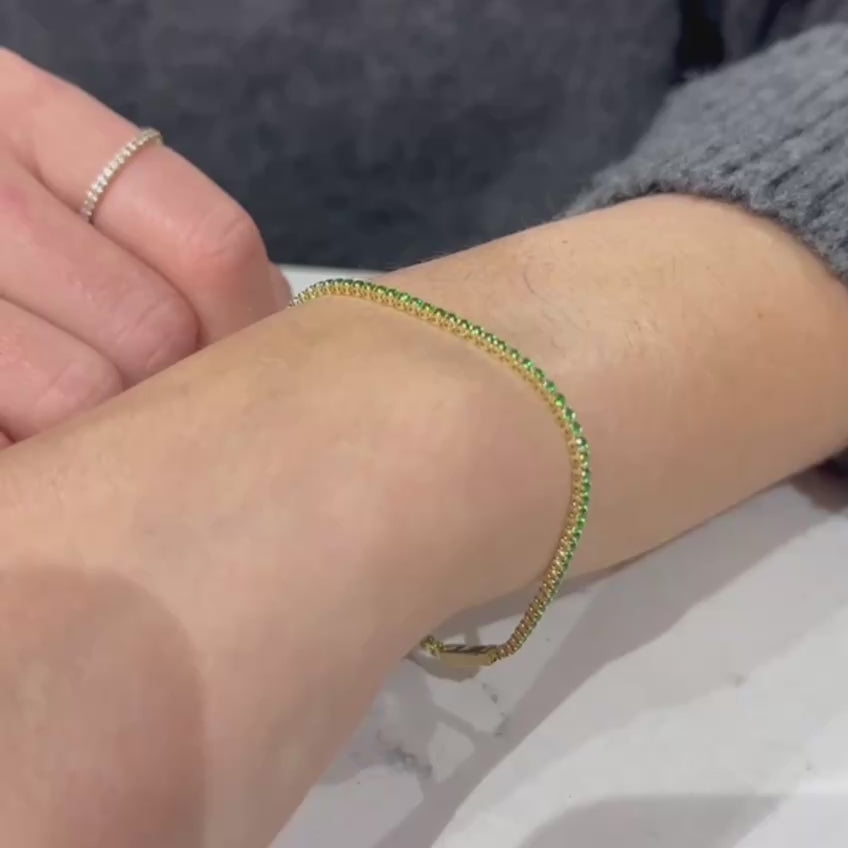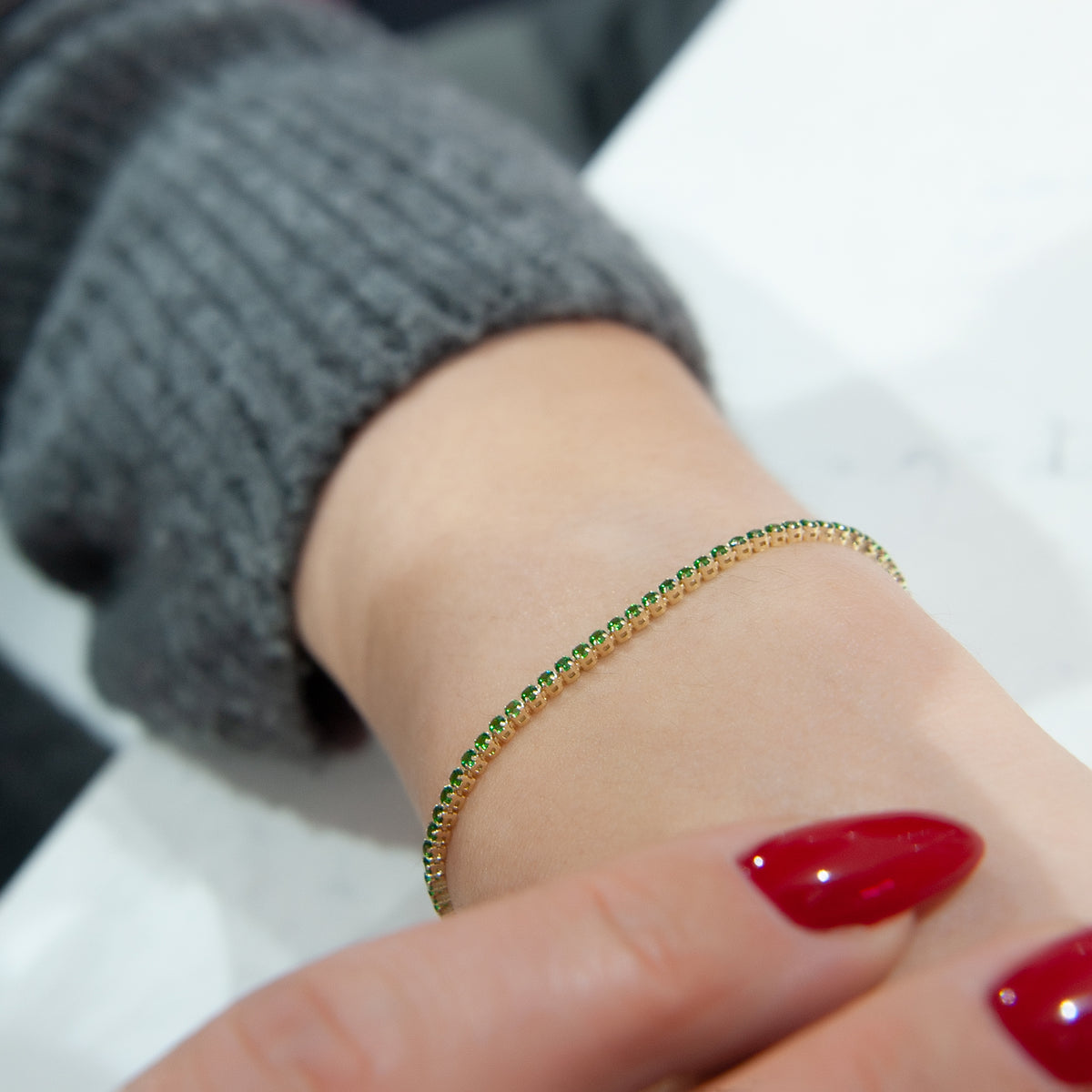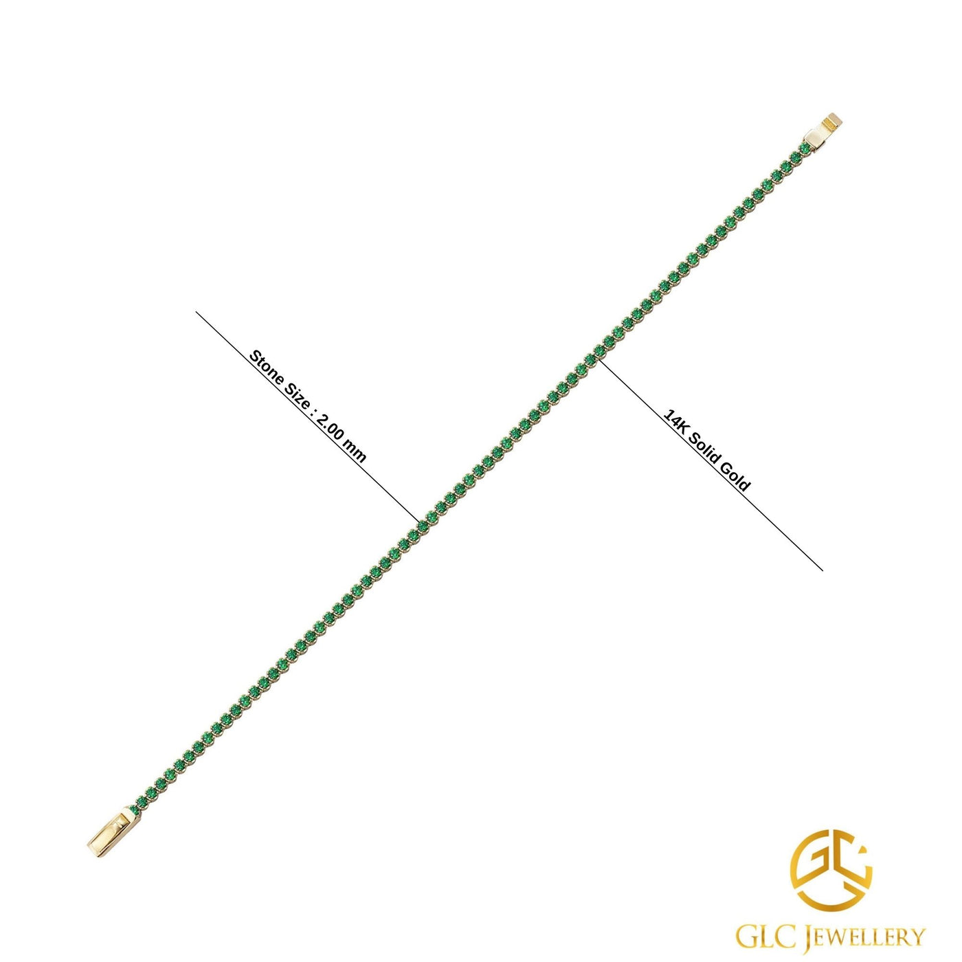 14K Solid Gold Tennis Bracelet, Chain Bracelet, Emerald Color Bracelet