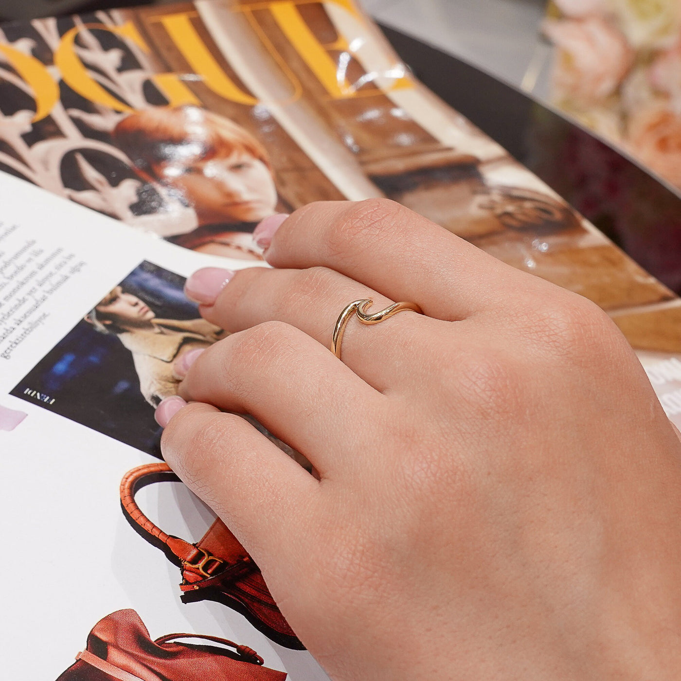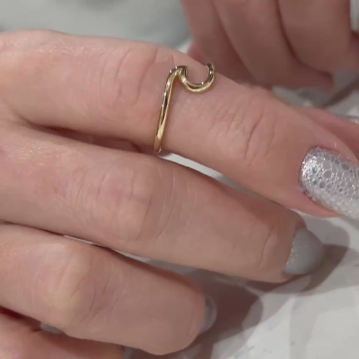 14K Solid Gold Wave Ring, Ocean Tide, Wavy Ring