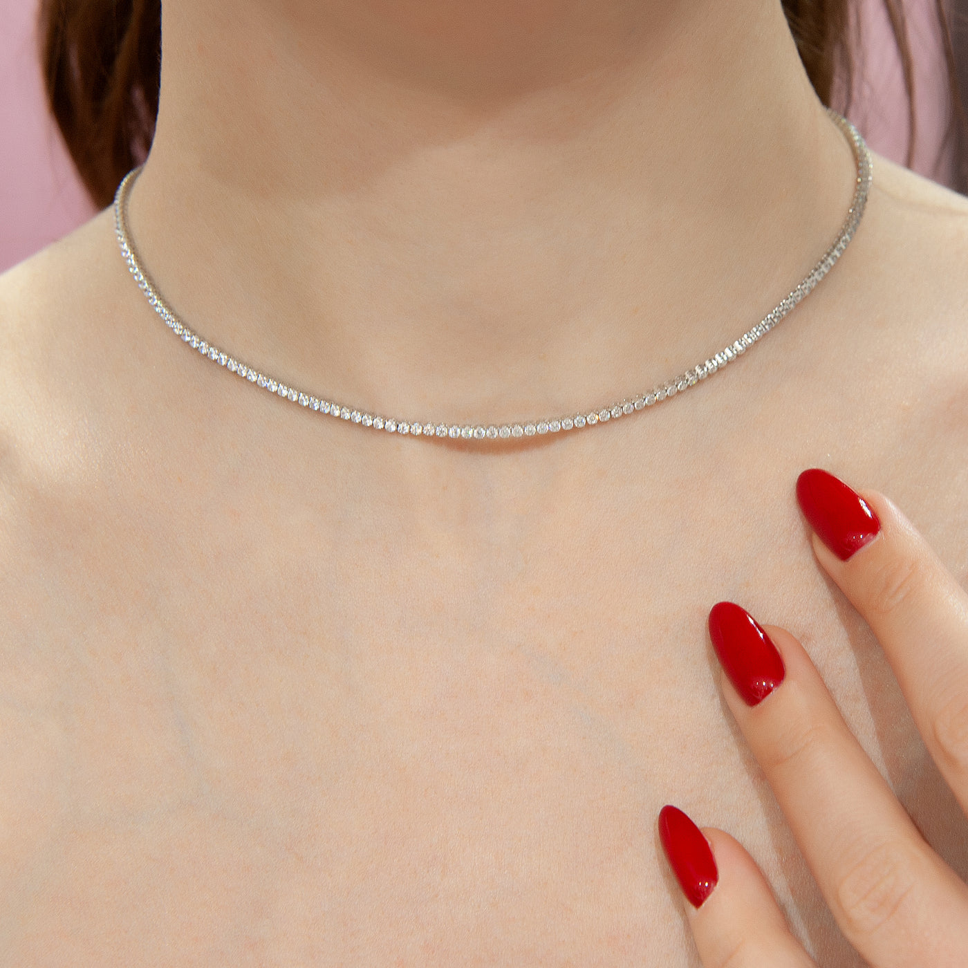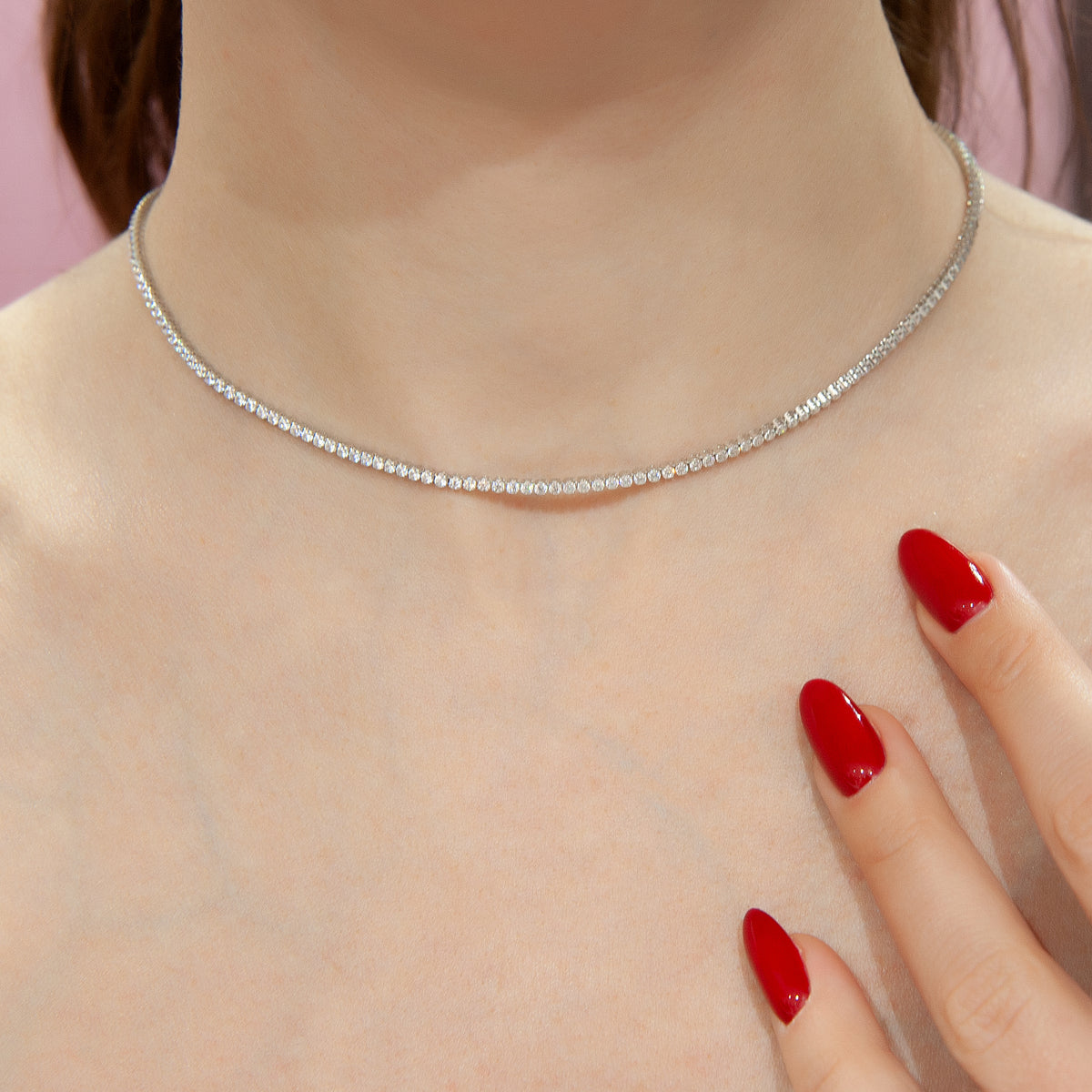 14K White Gold Tennis Necklace, Chain Necklace, Choker Necklace, Wedding Necklace