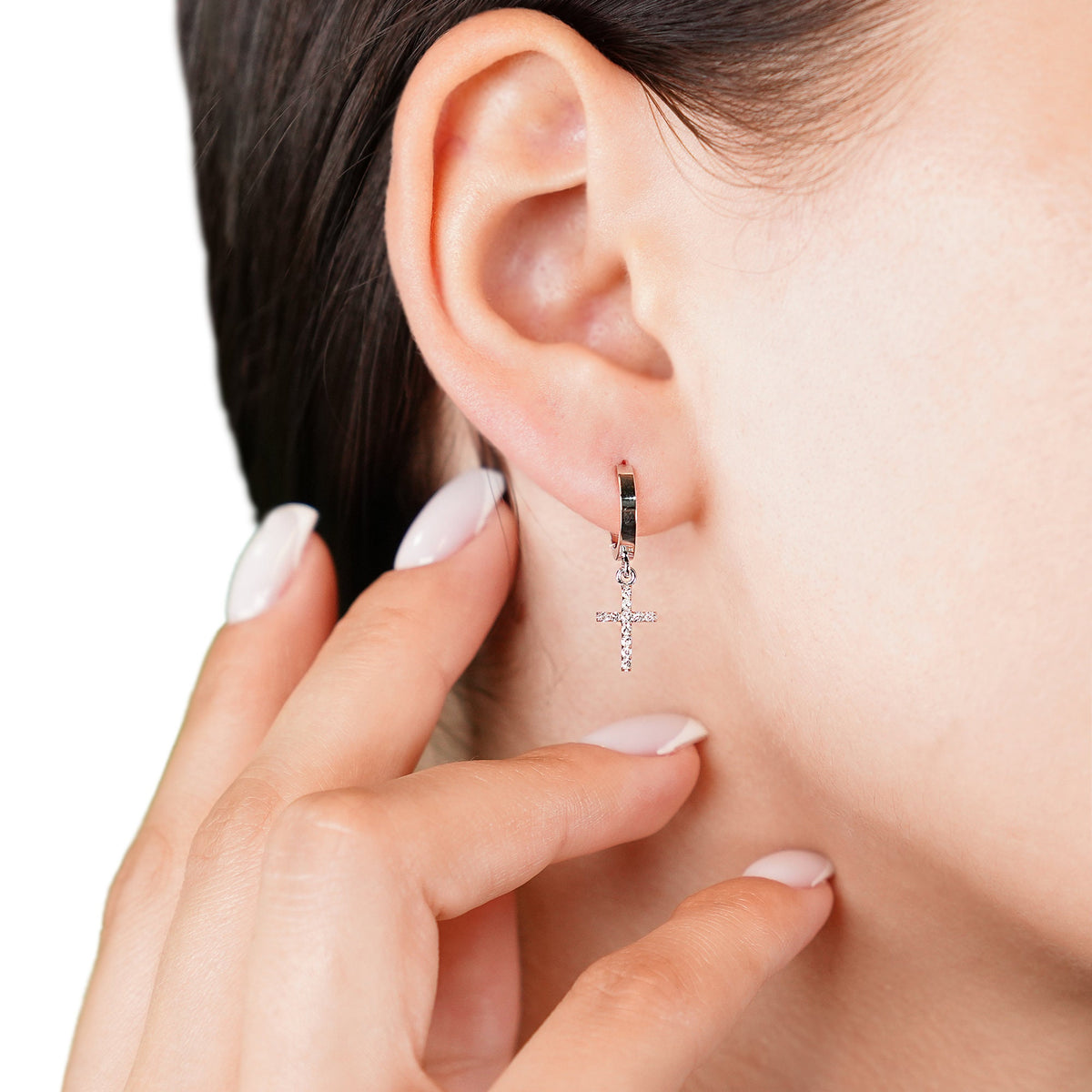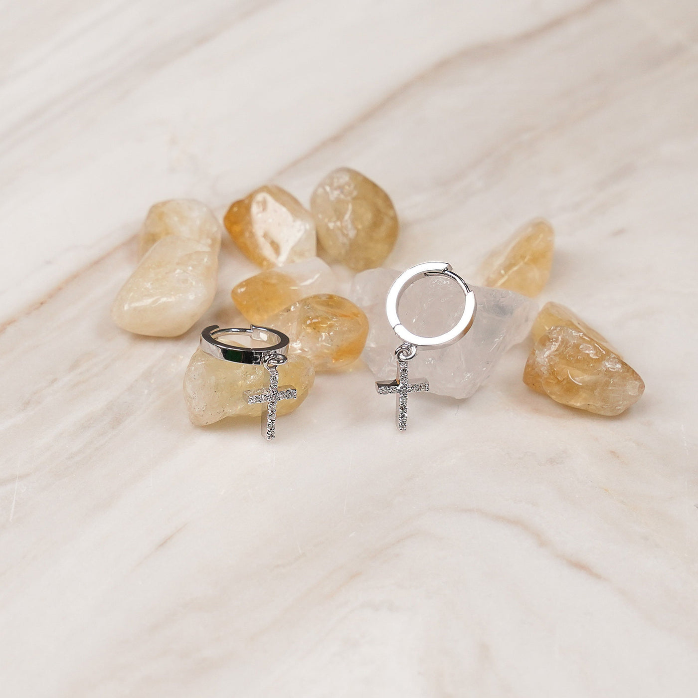 14K Diamond Cross Huggie Hoop Earrings