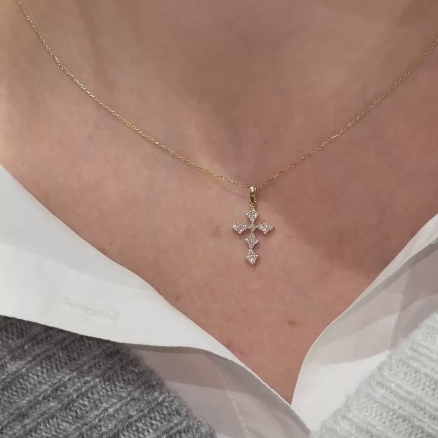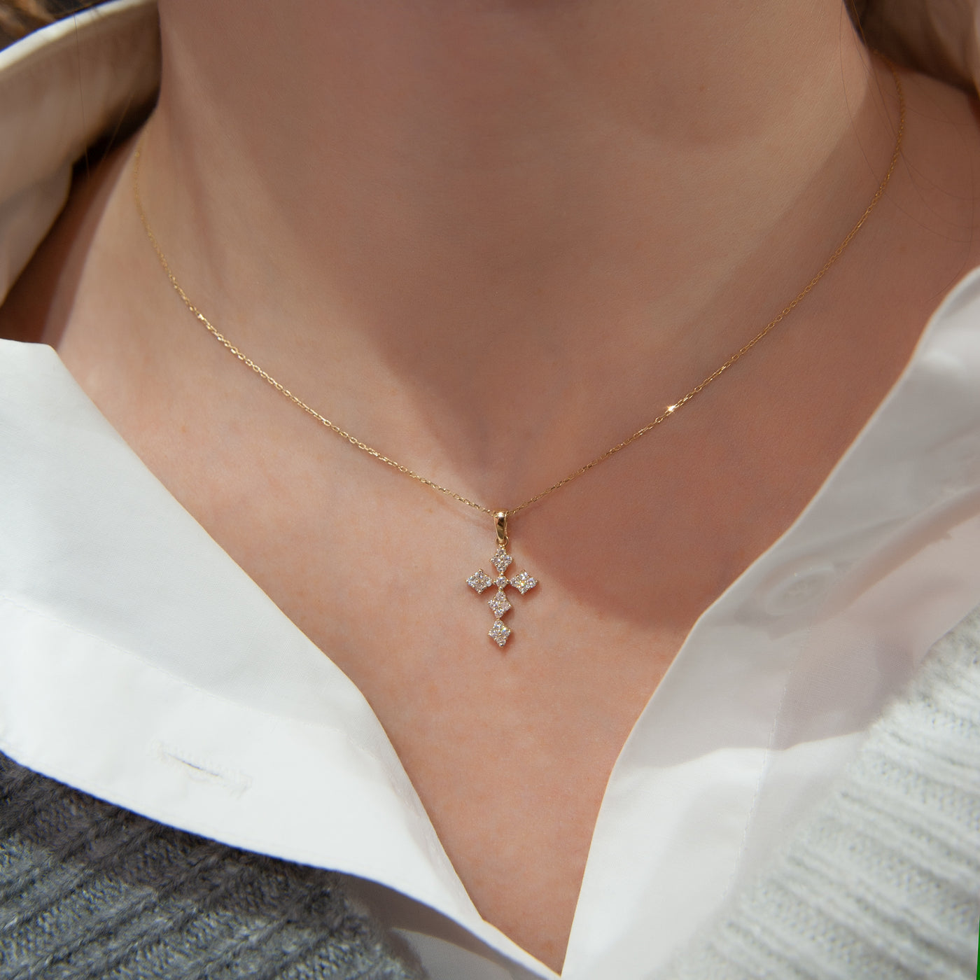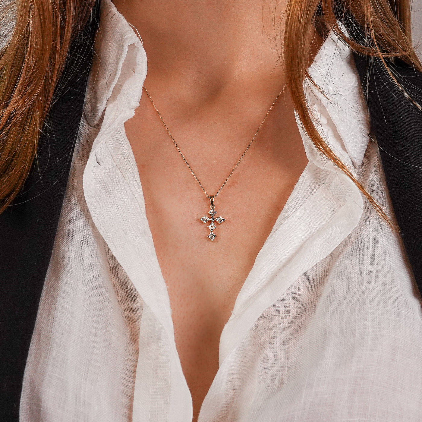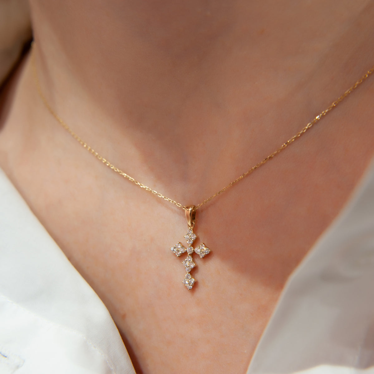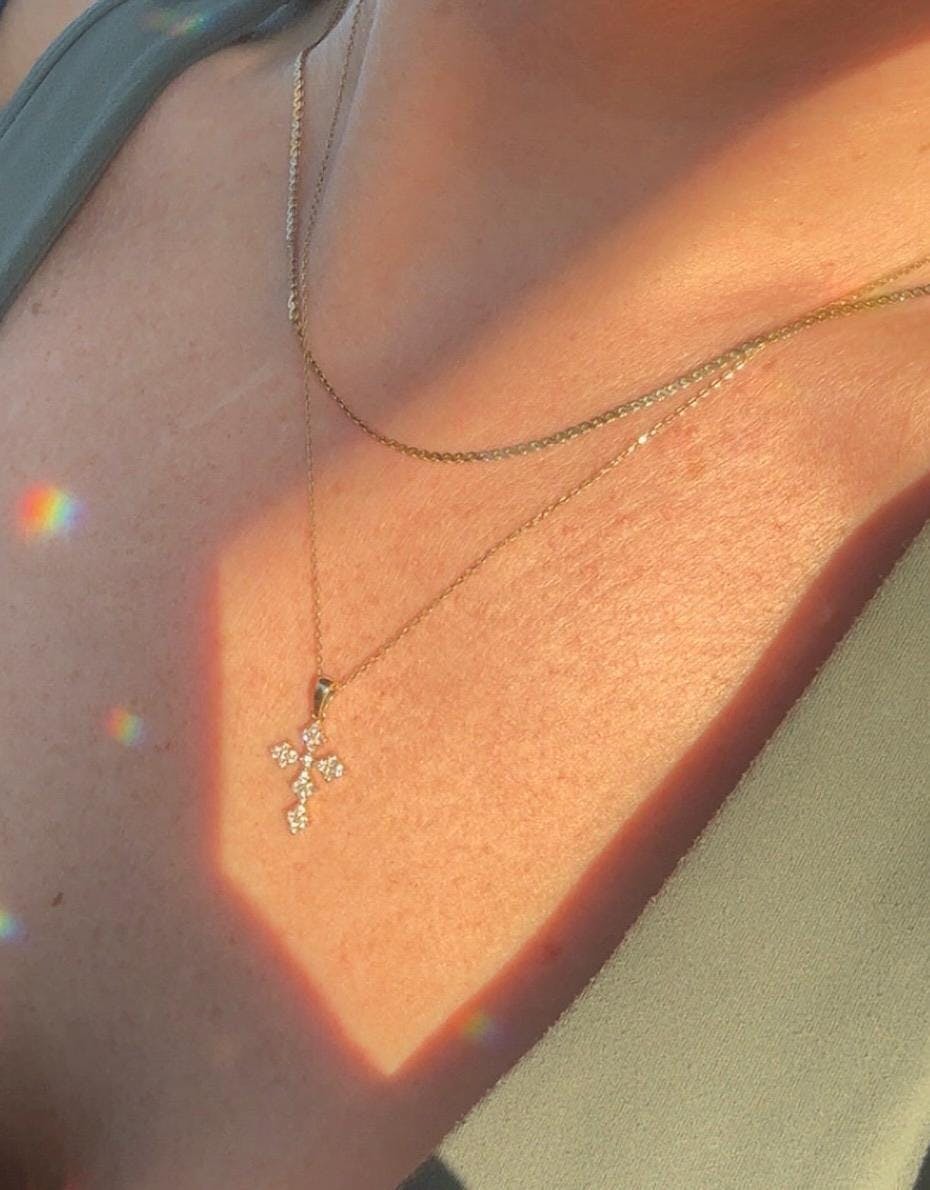14K Solid Gold Diamond Cross Necklace, Cross Necklace Pendant