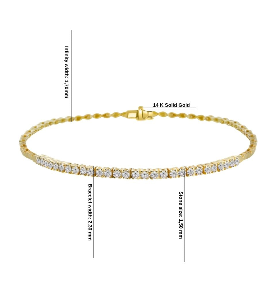 • Bracelet width: 2,30mm - Stone size: 1,50mm - Infinity width: 1,70mm