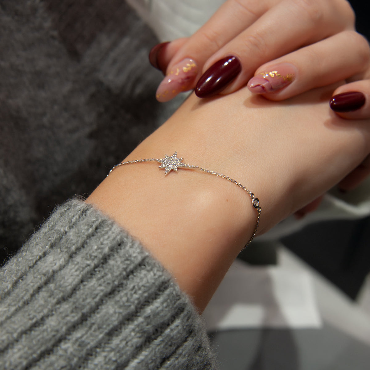 Tiny Star Bracelet, 14K White Gold Diamond Bracelet