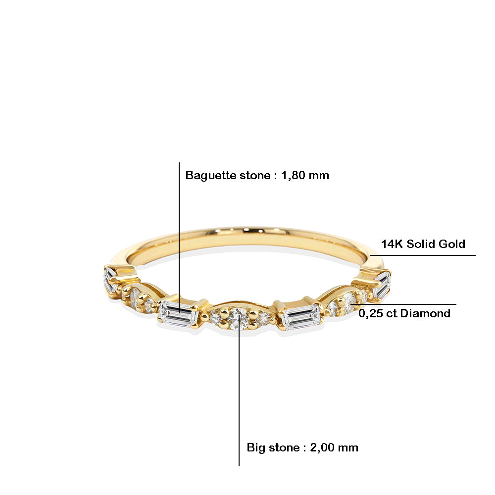 This elegant 14K gold diamond band features a stunning mix of baguette and round natural diamonds, creating a modern yet timeless sparkle. Perfect for stacking or wearing alone, it adds refined brilliance to any jewelry collection. Lightweight and luxurious, this piece makes a meaningful and stylish gift for her for any special moment.