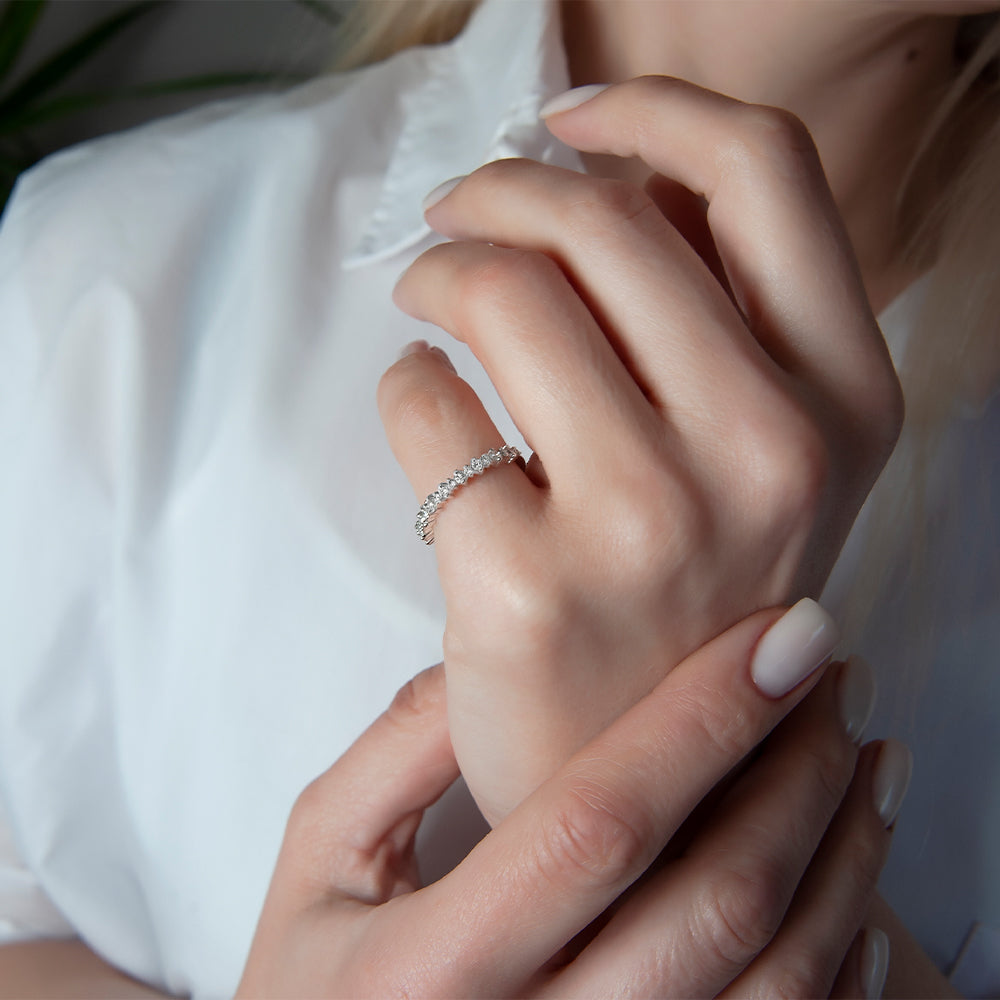 This 14K gold milgrain diamond band features natural round diamonds set in a delicate vintage-inspired pattern. The soft milgrain texture adds timeless charm, making it perfect for stacking or wearing alone. Elegant, lightweight, and beautifully crafted, this ring is a meaningful and luxurious gift for her for any special occasion.