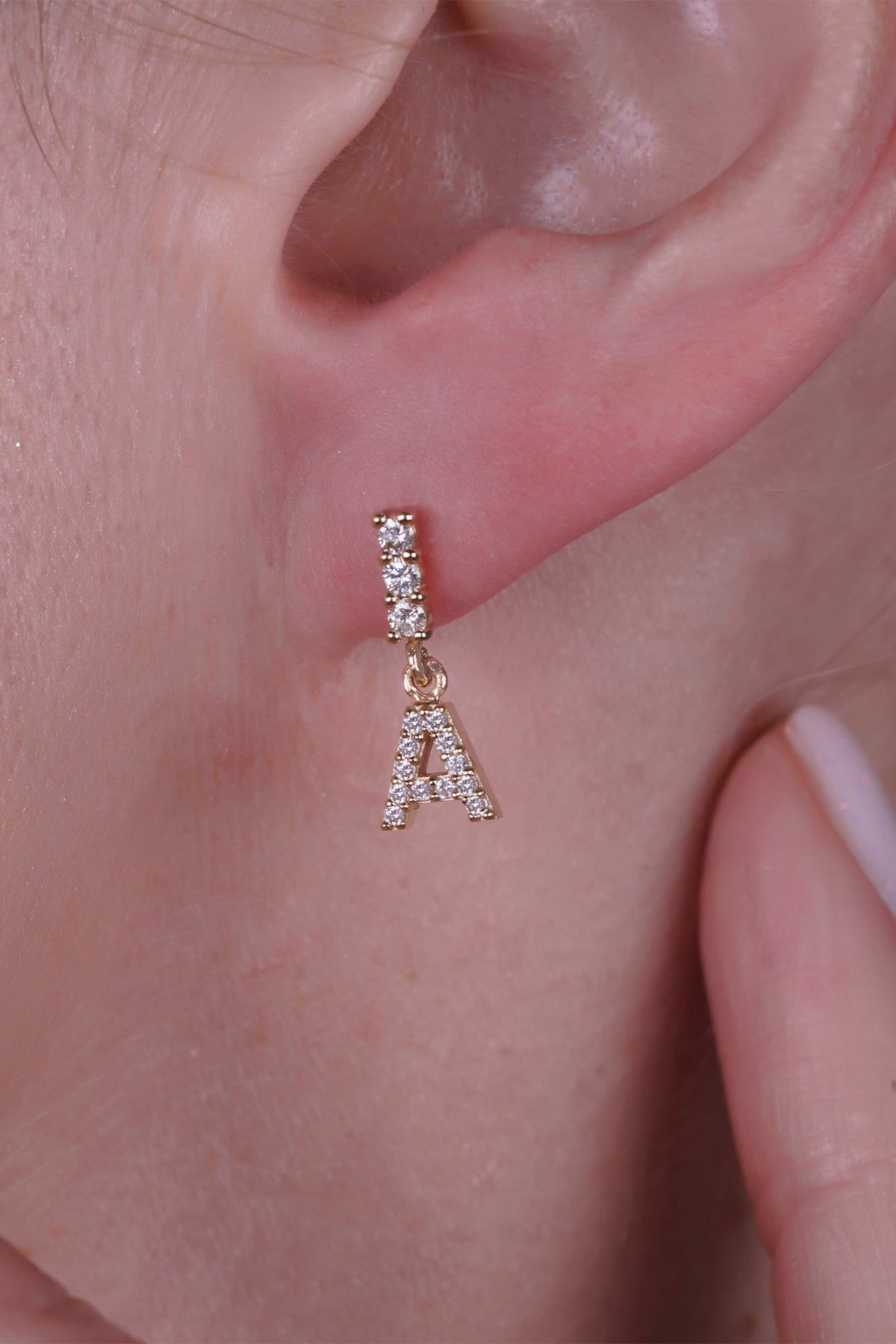 14K Gold Diamond Letter A Earring