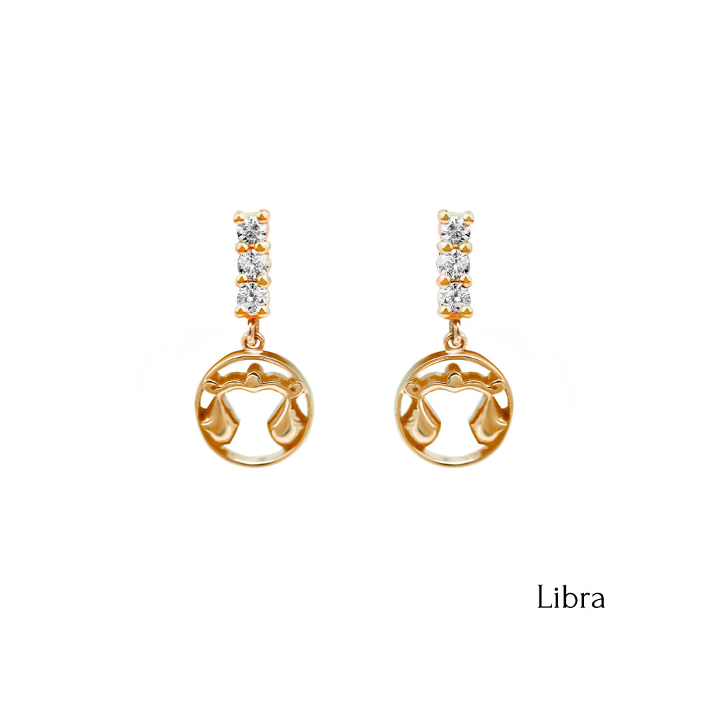 14K Gold Diamond Libra Earrings