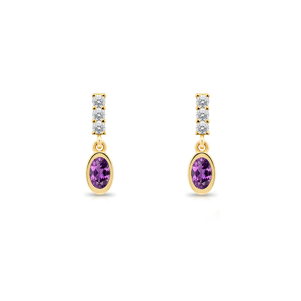 These 14K gold amethyst drop earrings feature a rich oval purple amethyst accented with delicate diamond details. Designed to bring a refined and elegant touch, they are perfect for everyday wear and special occasions. Handmade with solid gold and carefully selected stones, these earrings make a meaningful anniversary gift, birthday gift, or elegant jewelry for her.