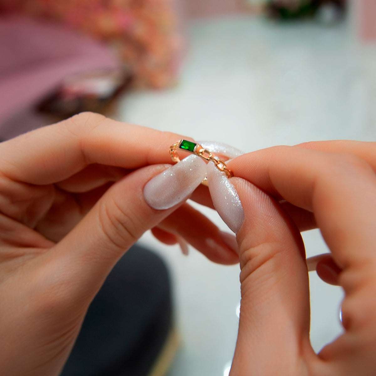 • Avoid contact with harsh chemicals, perfumes, and household cleaners, as they may affect both the diamond and the metal.