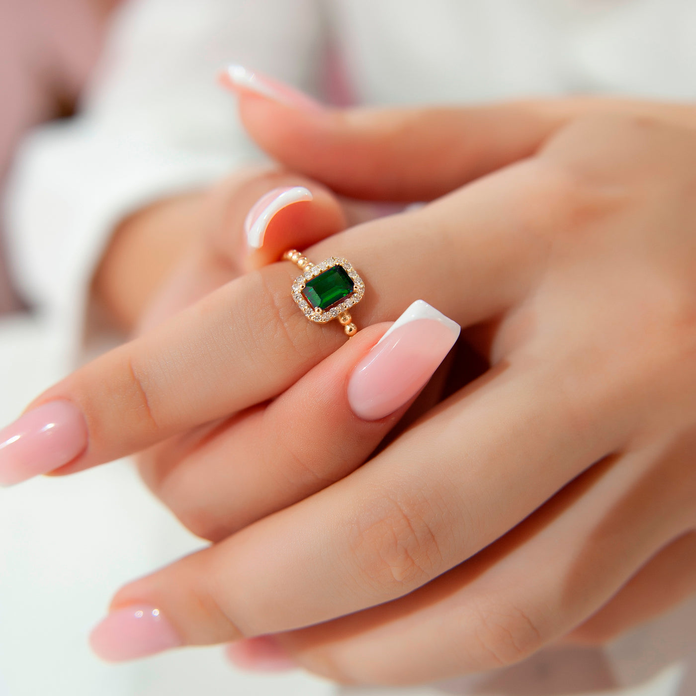 14K Gold Emerald Cut Diamond Emerald Ring