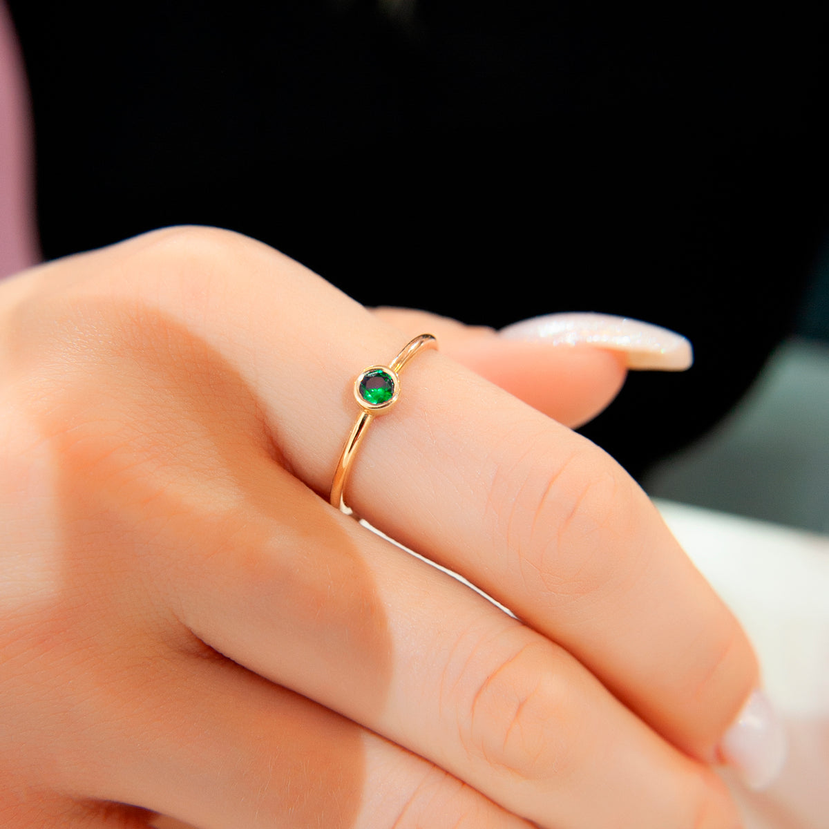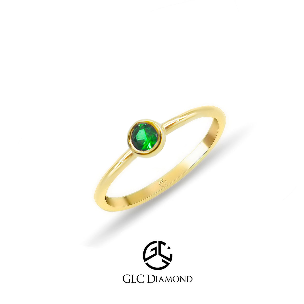 14K Gold Round Cut Solitaire Emerald Ring