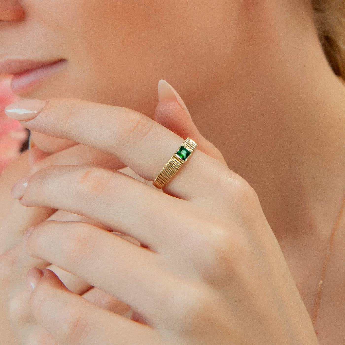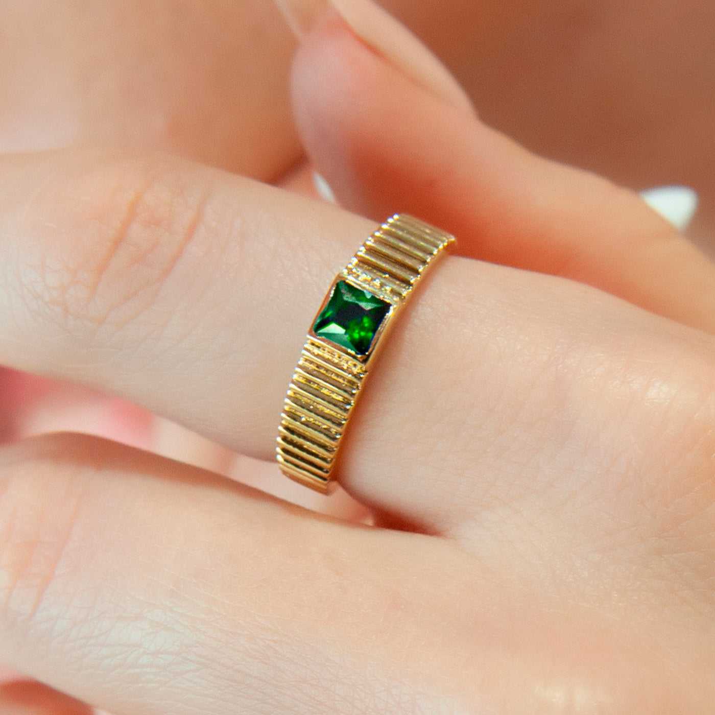14K Gold Square Emerald Ring