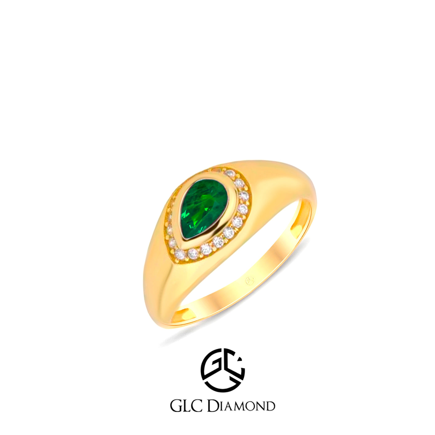 14K Gold Teardrop Emerald Ring with Diamond Halo
