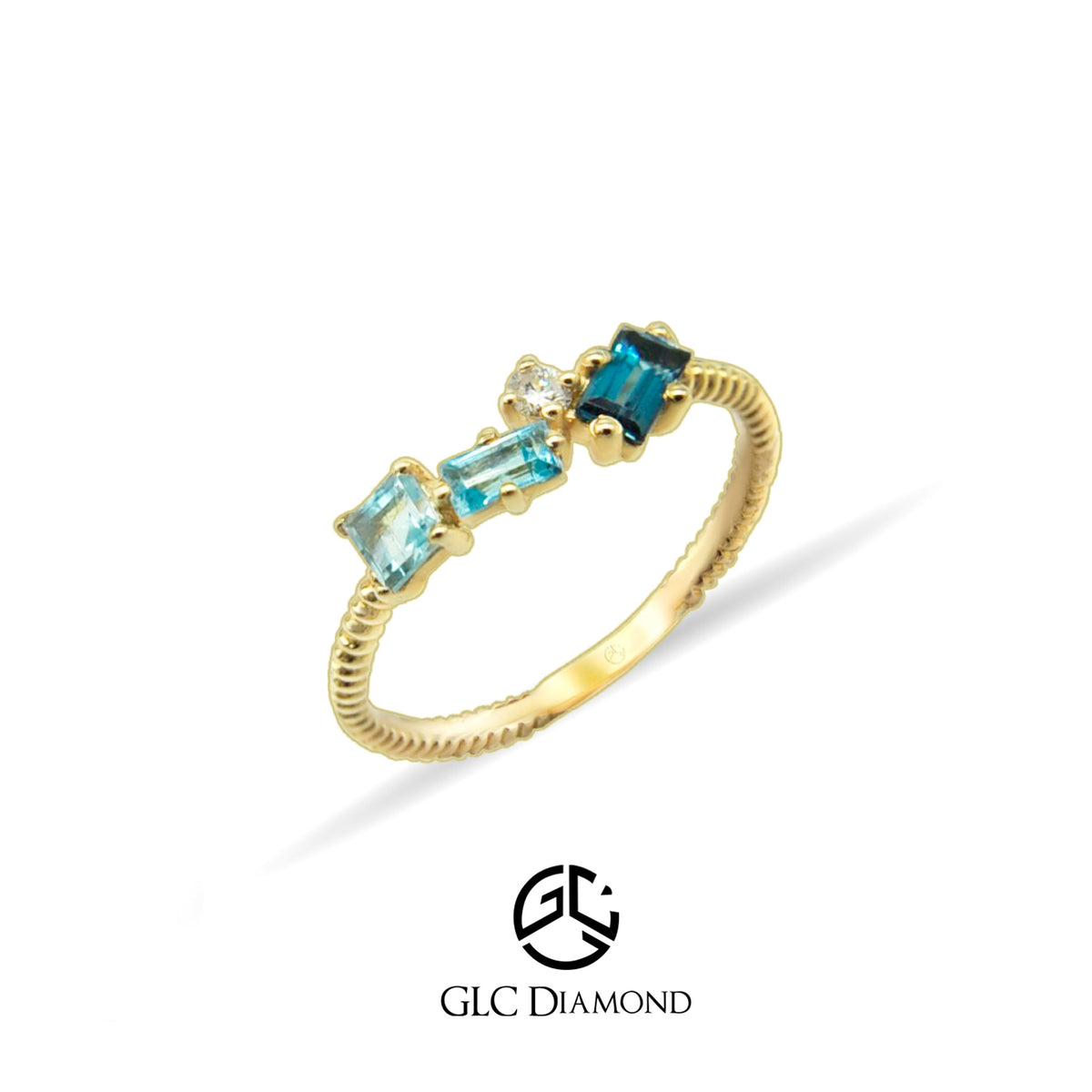 14K Gold Diamond Design Ring London Blue Ring