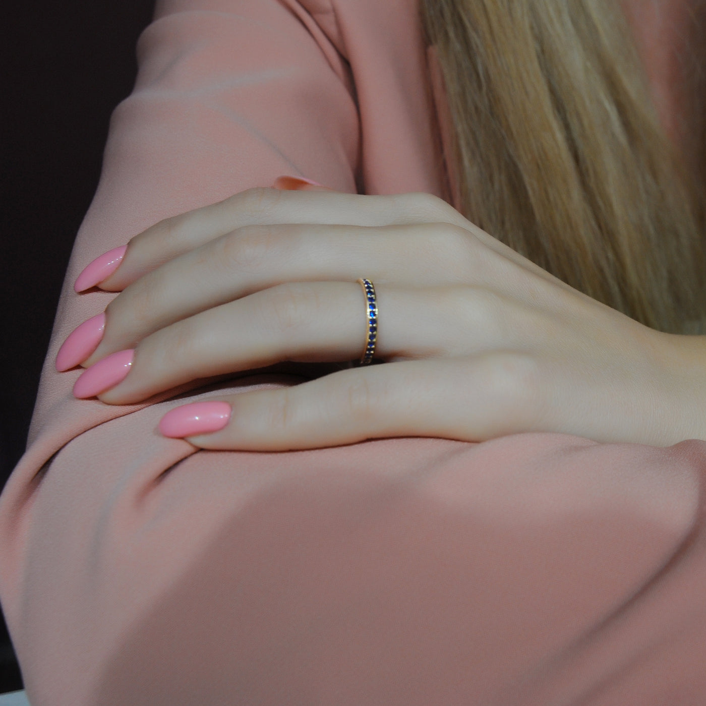 14K Solid Gold Blue Sapphire Full Eternity Band