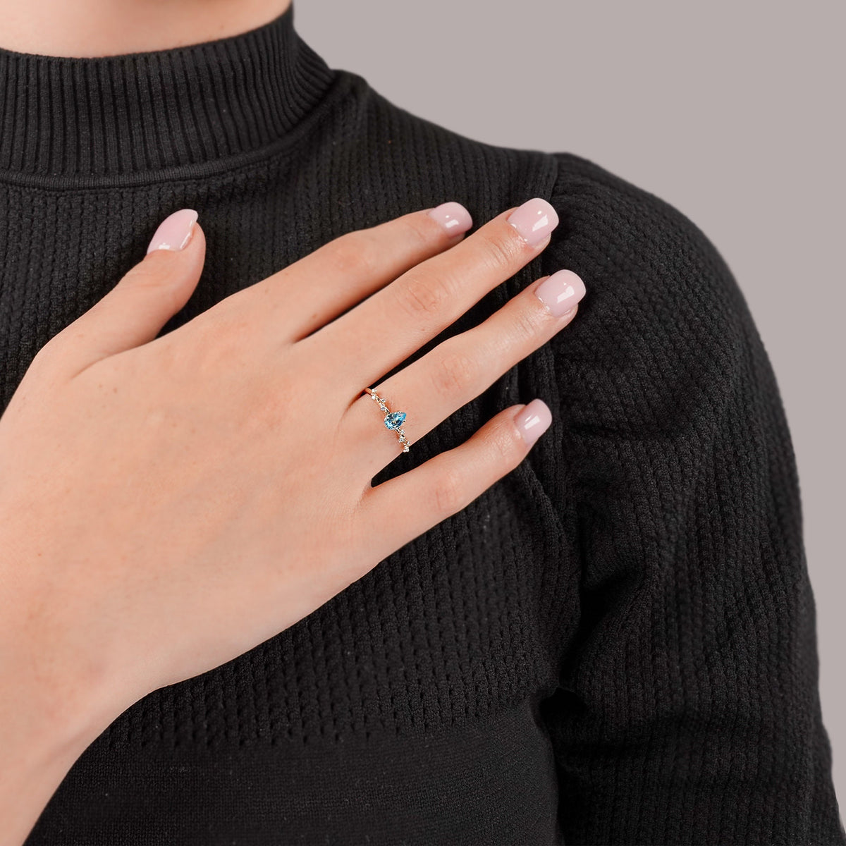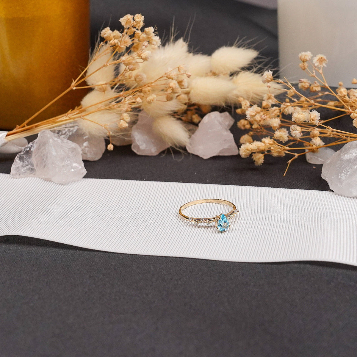 Blue Sky Ring, Blue Engagement Ring, Pear Cut 14K Solid Yellow Gold Wedding Ring