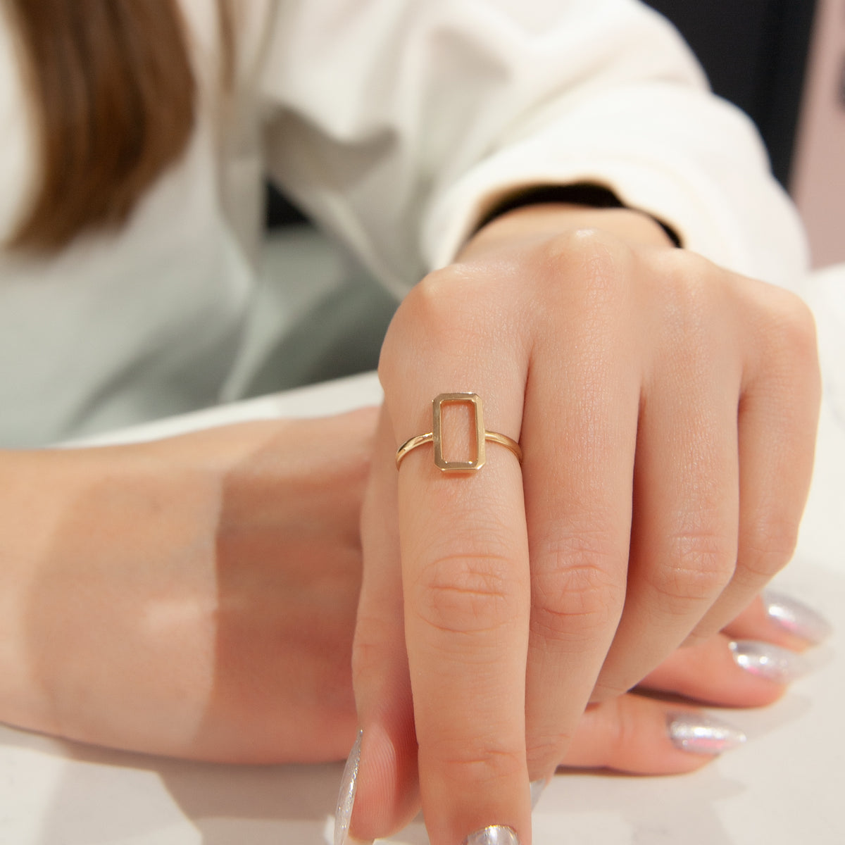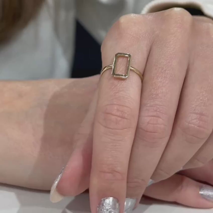 14K Solid Gold Ring, Frame Ring, Geometric Ring