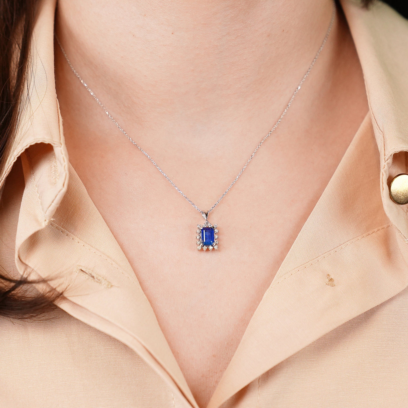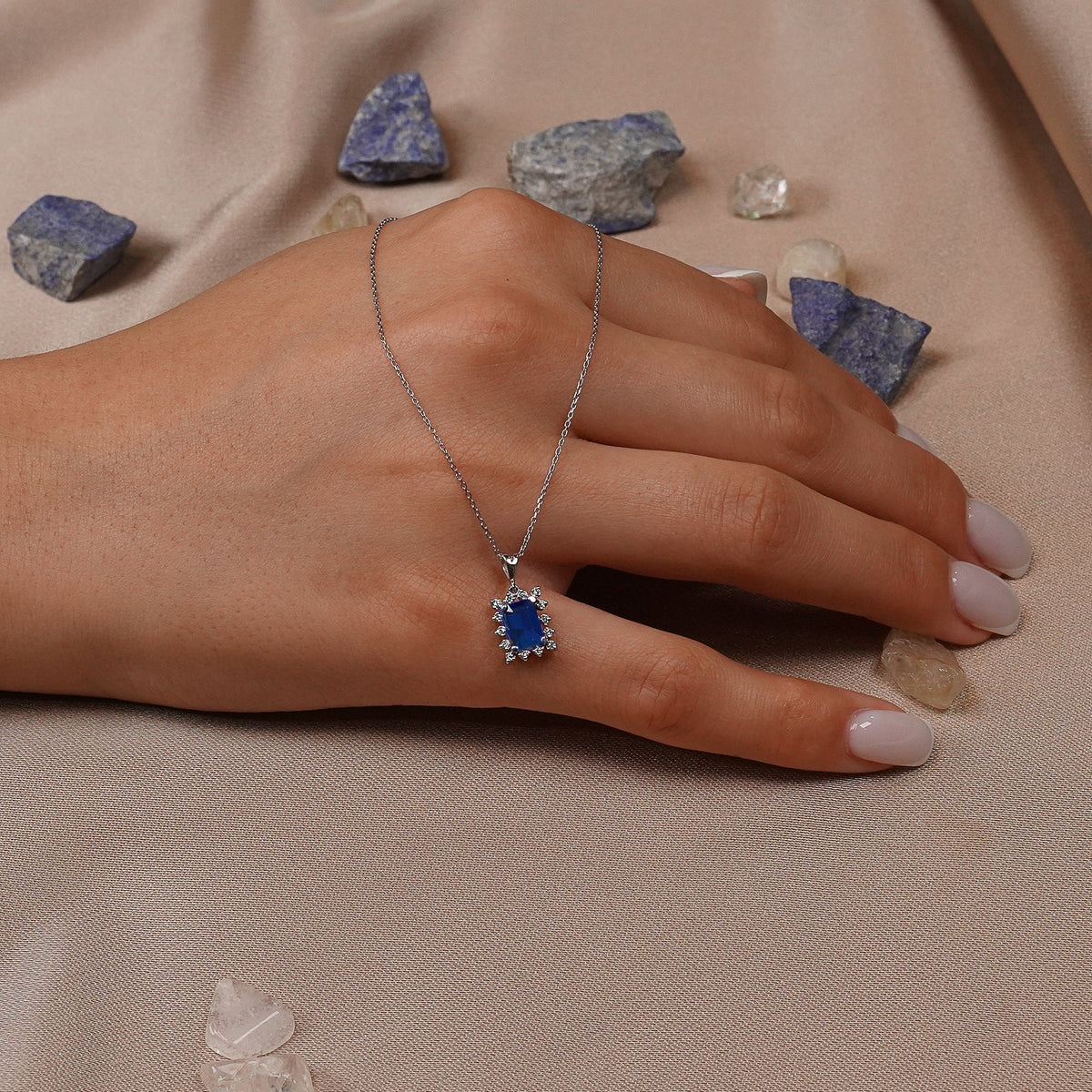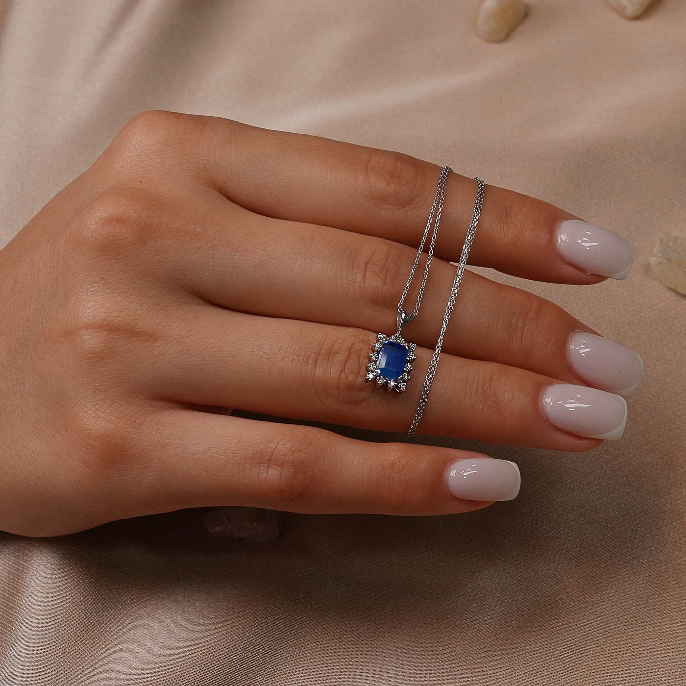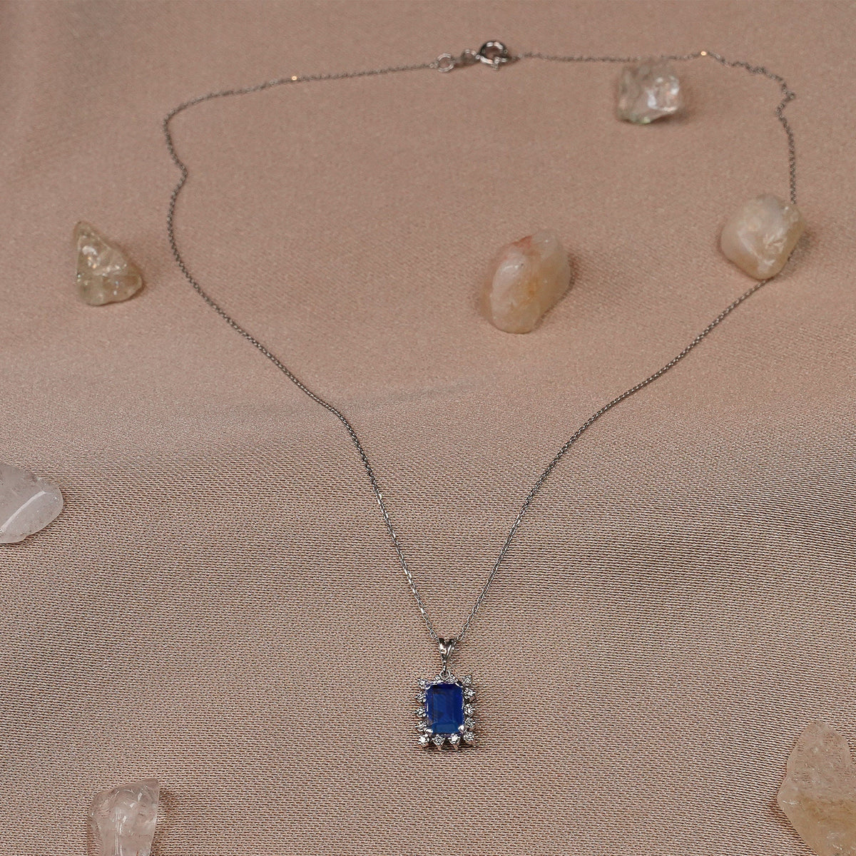Quality Unique Emerald Blue Sapphire Single Cut Diamond Halo Necklace