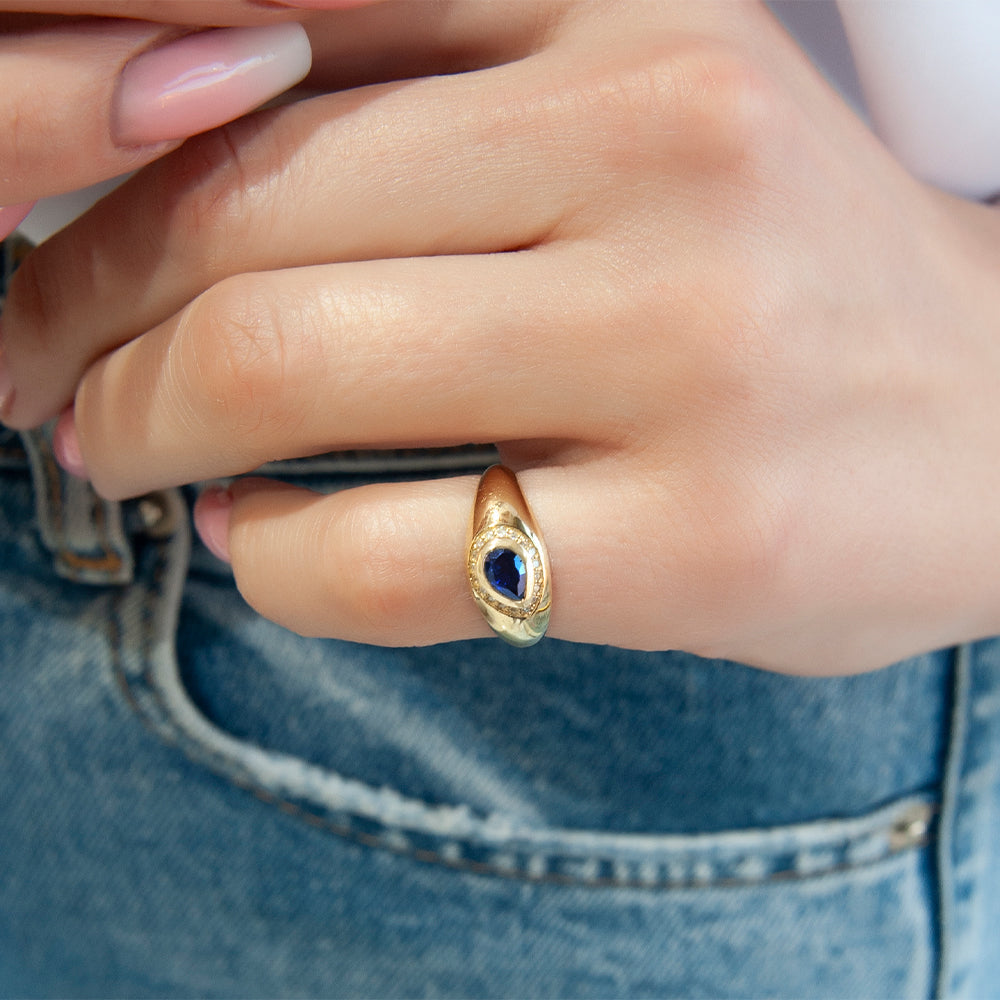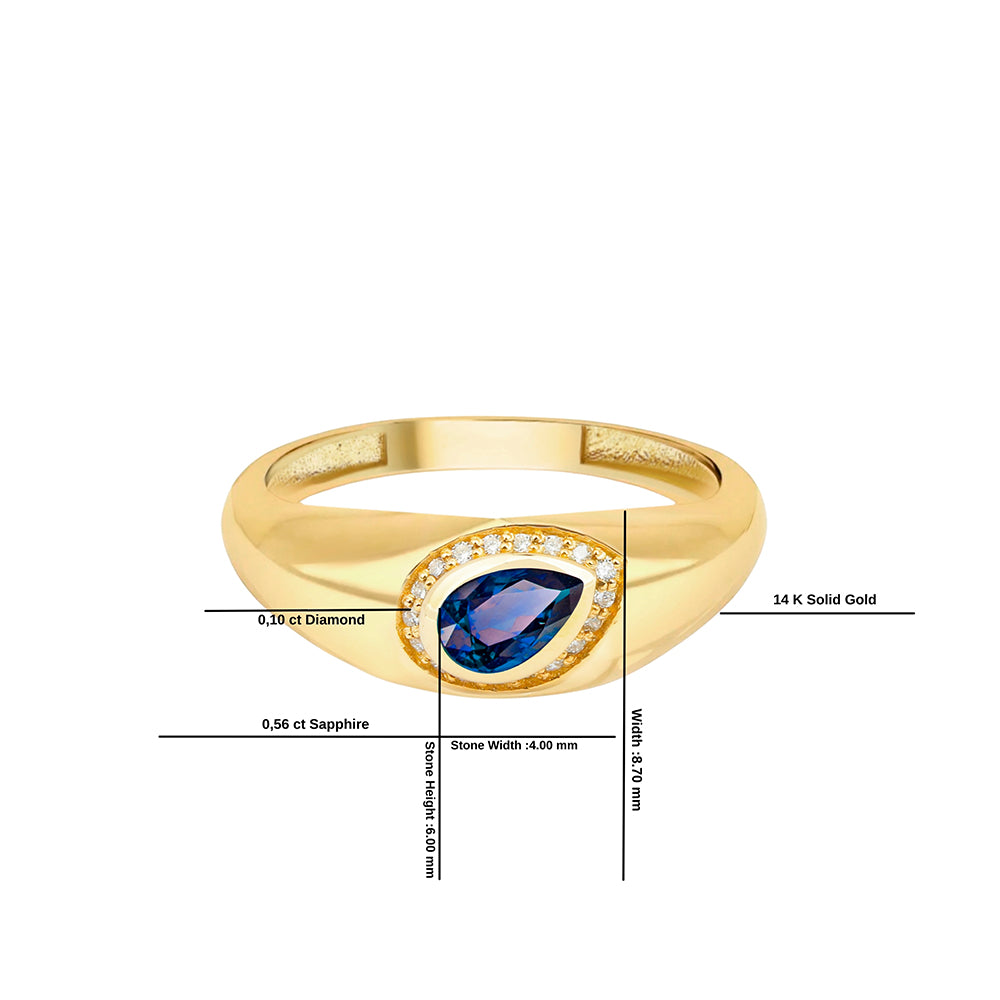 14K Gold Blue Sapphire & Diamond Pear-Shaped Signet Ring