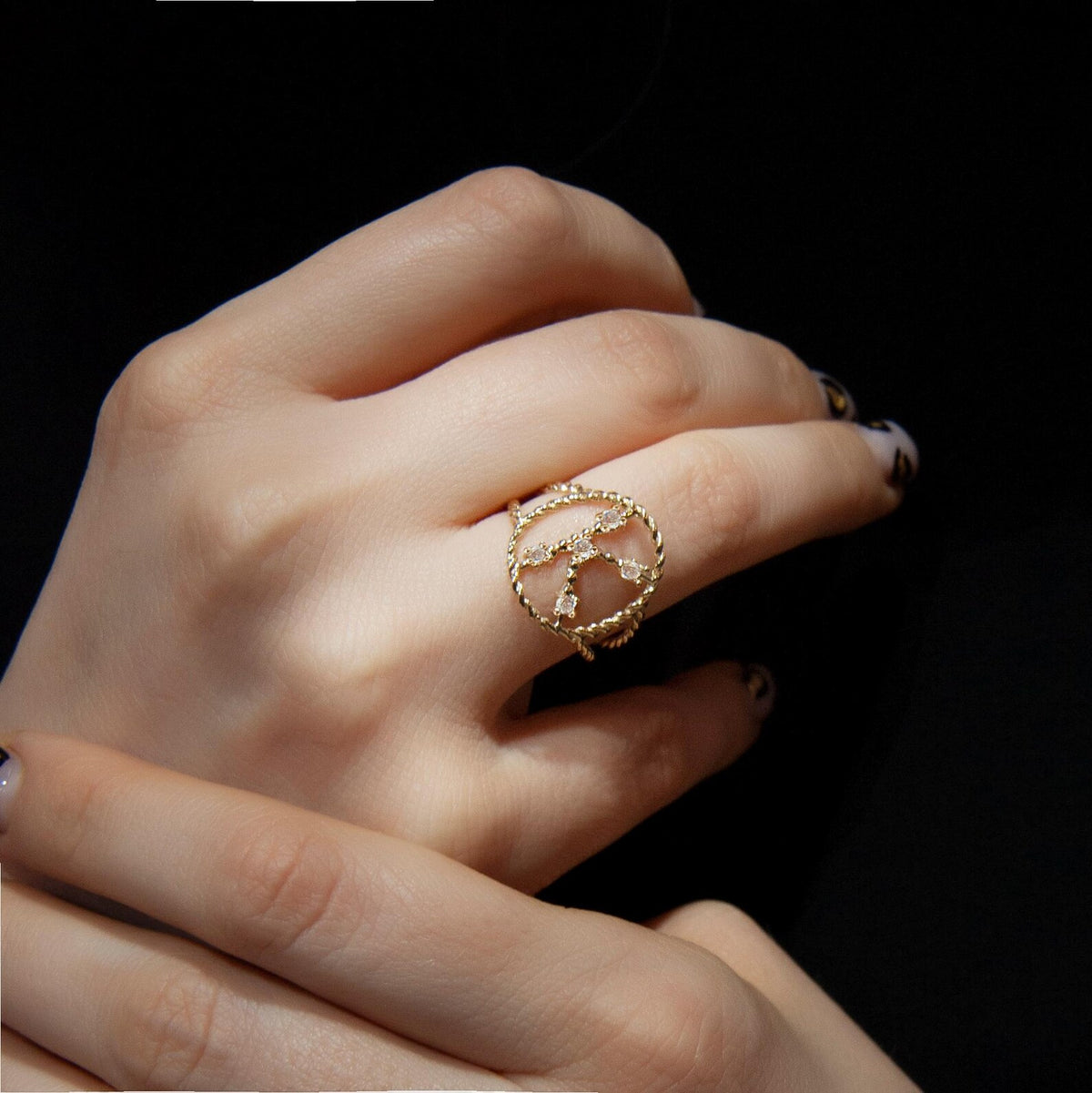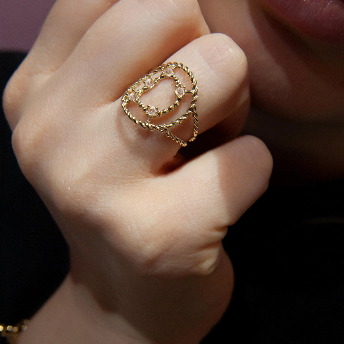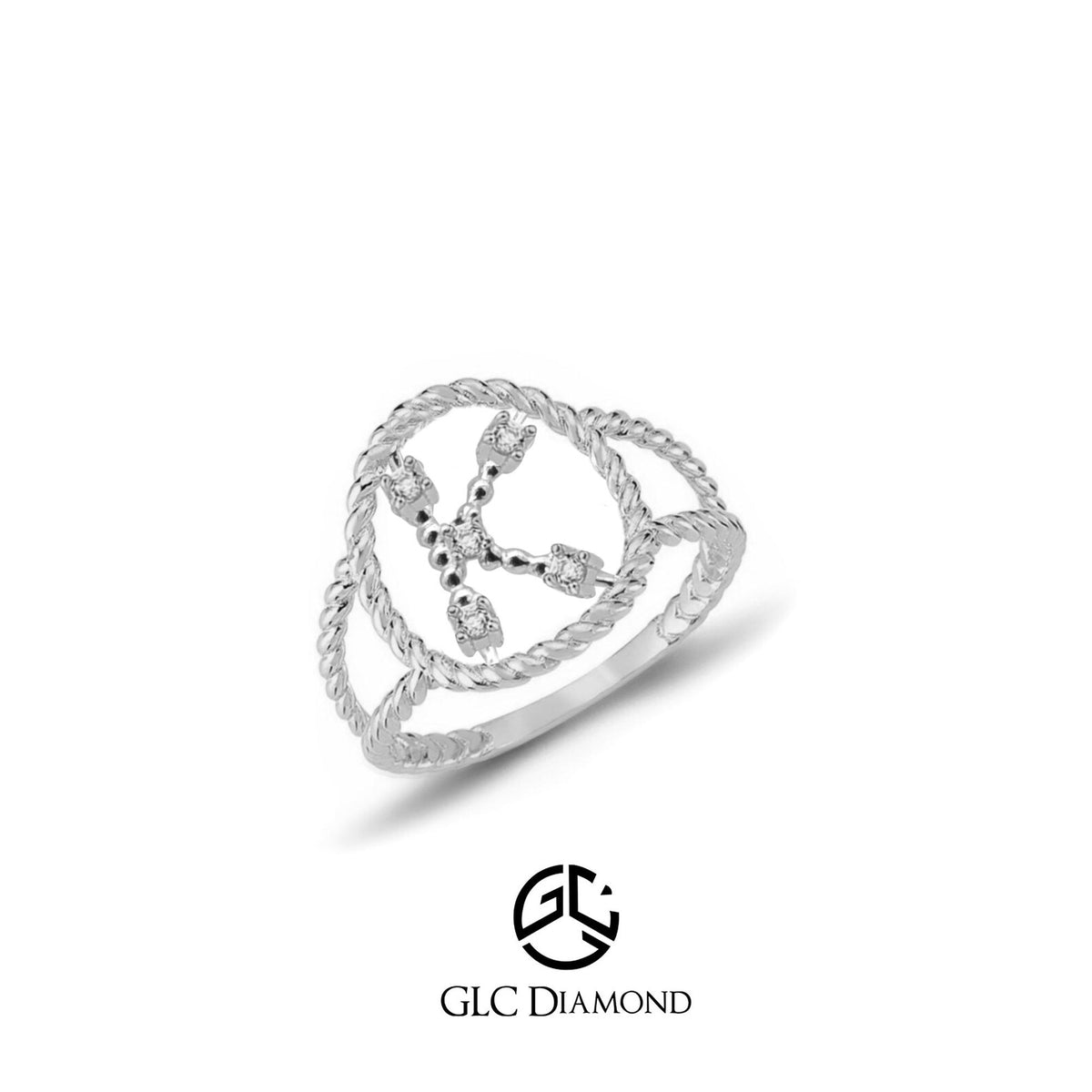 14K Gold Diamond Initial K Ring: Personalized Rope Design