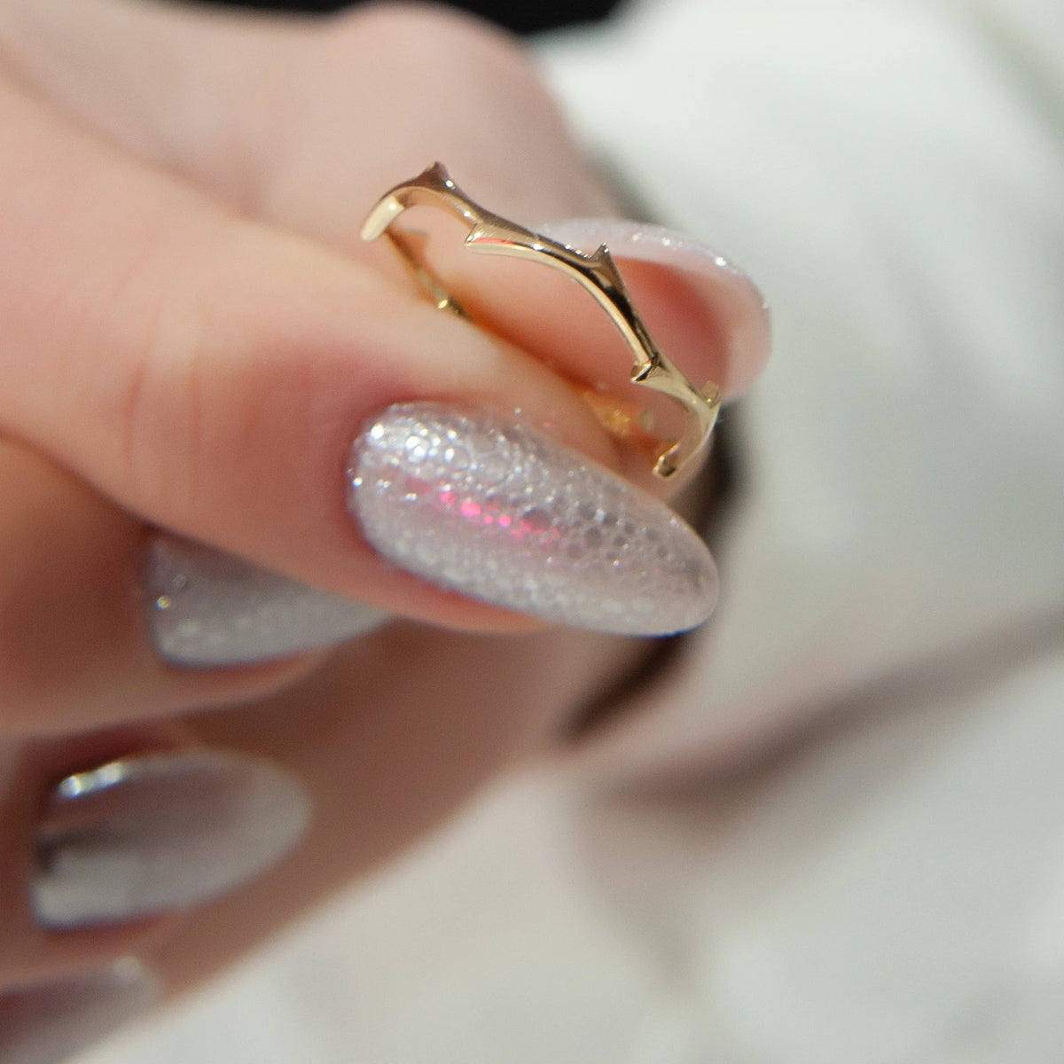 14K Solid Gold Twig Ring, Minimalist Stacking Band