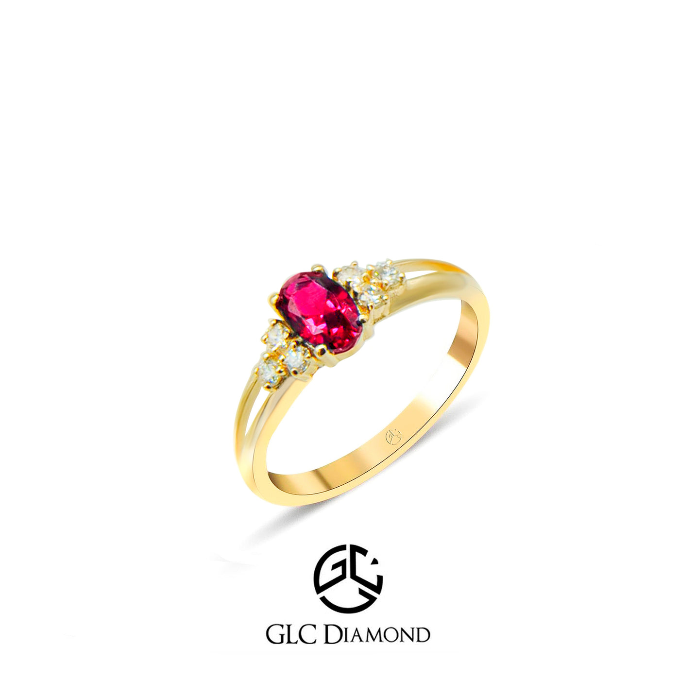 14K Gold Diamond Ruby Ring, Minimalist Ring