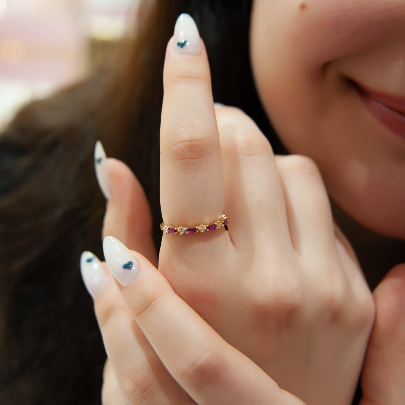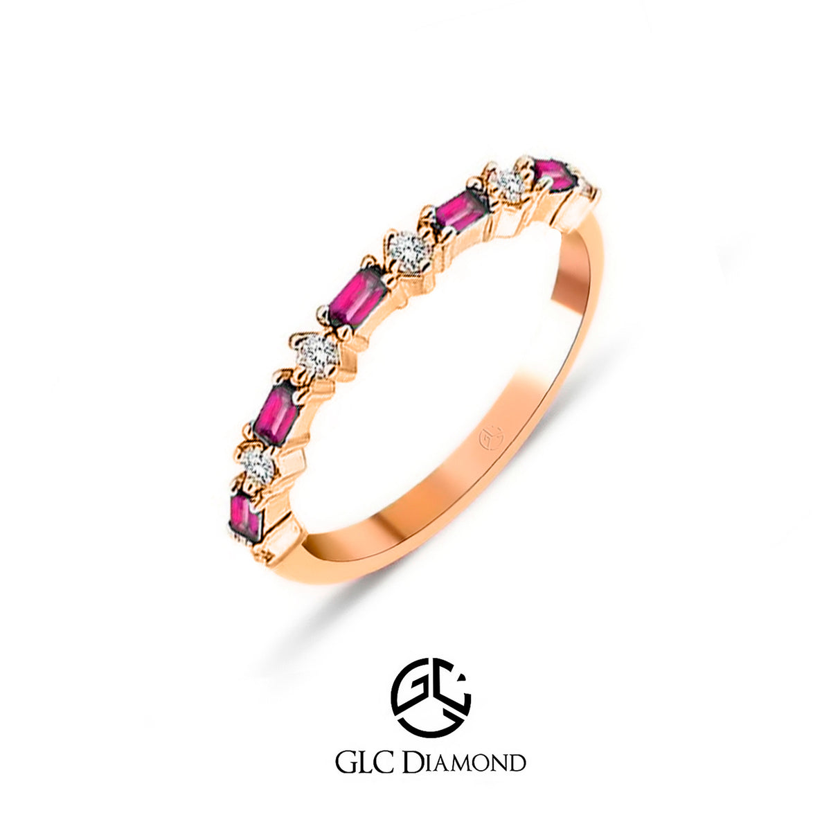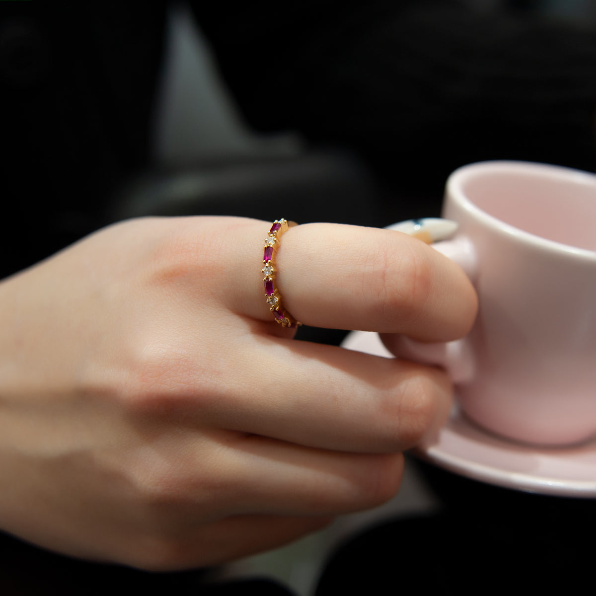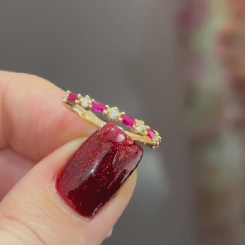 Ruby Baguette Cut Eternity Ring, 14K Solid Gold Half Eternity Wedding Band