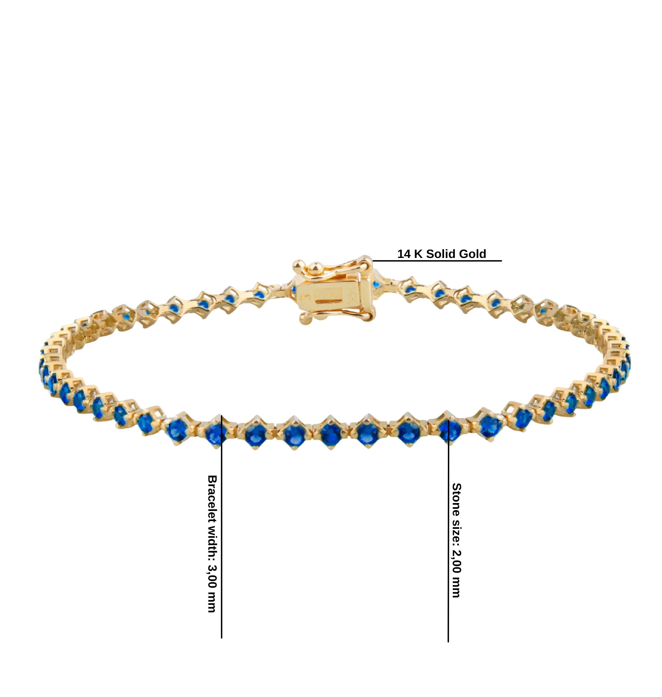 This 14k solid gold sapphire tennis bracelet is a timeless jewelry piece, crafted with natural blue sapphires set in a continuous line. Known as the September birthstone, sapphire symbolizes wisdom, loyalty, and truth, making this bracelet both meaningful and stylish.