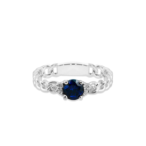 14K Gold Diamond Sapphire Chain Ring