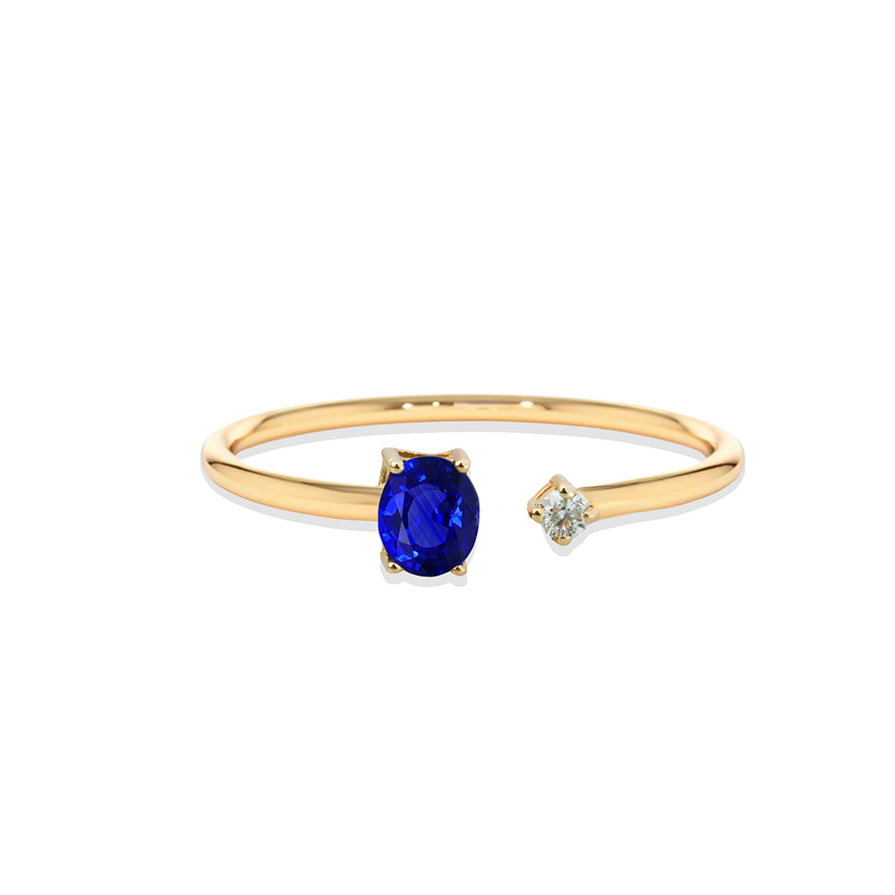 This chic gold ring features a stunning oval blue sapphire complemented by a sparkling diamond accent. Perfect for everyday wear or special occasions, this elegant piece adds a touch of sophistication to any outfit. Ideal as a unique gift or a personal treat, it’s a must-have addition to your jewelry collection!