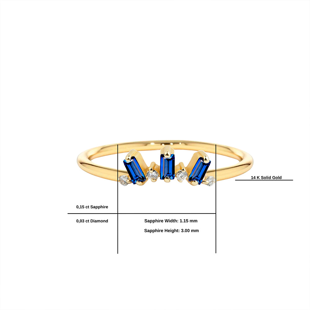 14K Solid Gold Baguette Diamond Sapphire Ring