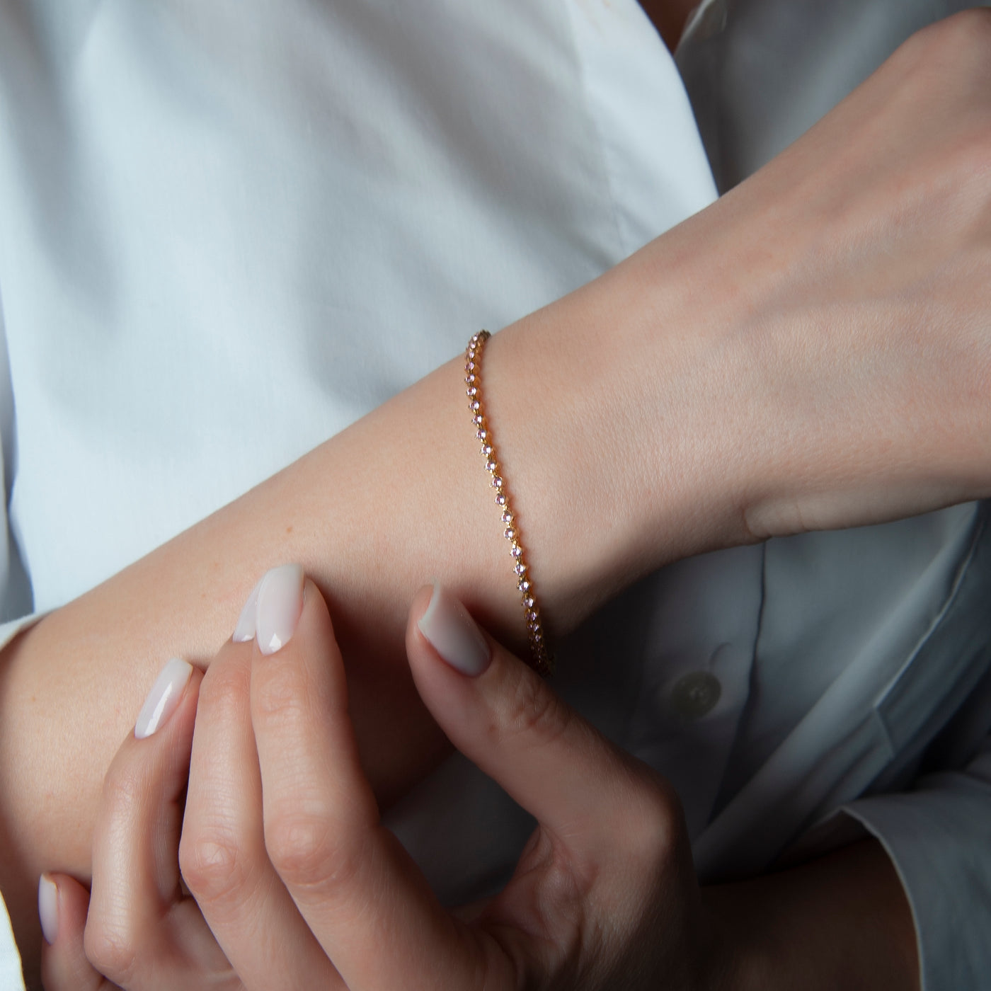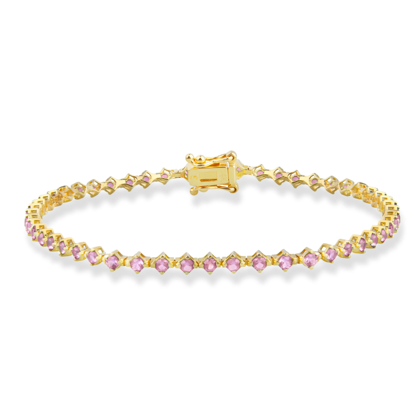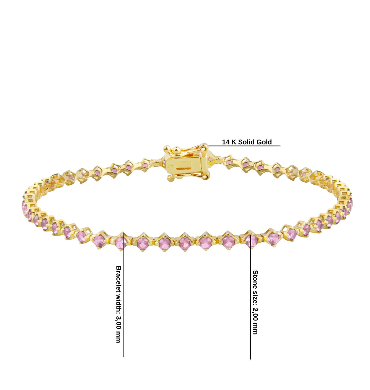 14K Gold Pink Sapphire Tennis Bracelet / Dainty Fine Jewelry