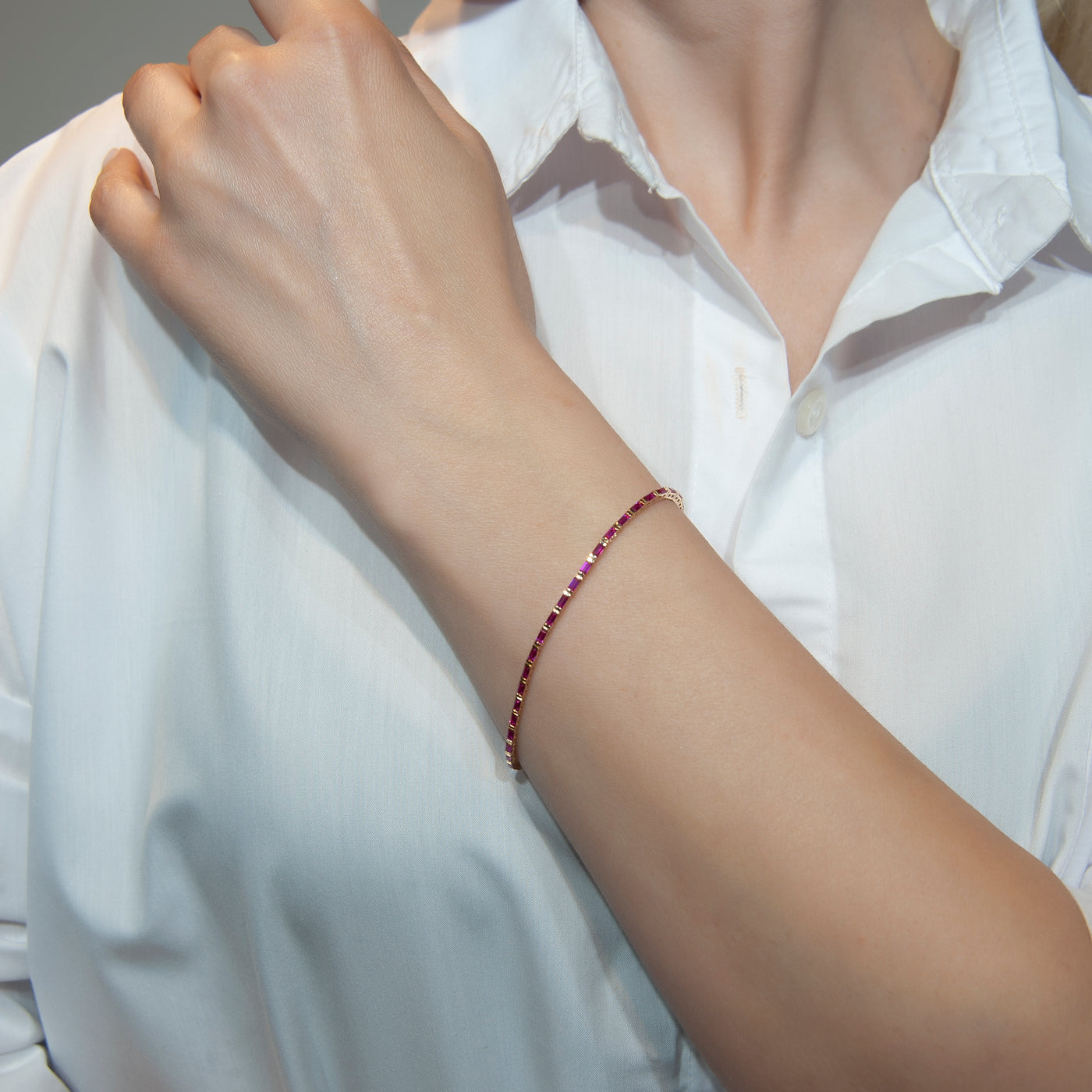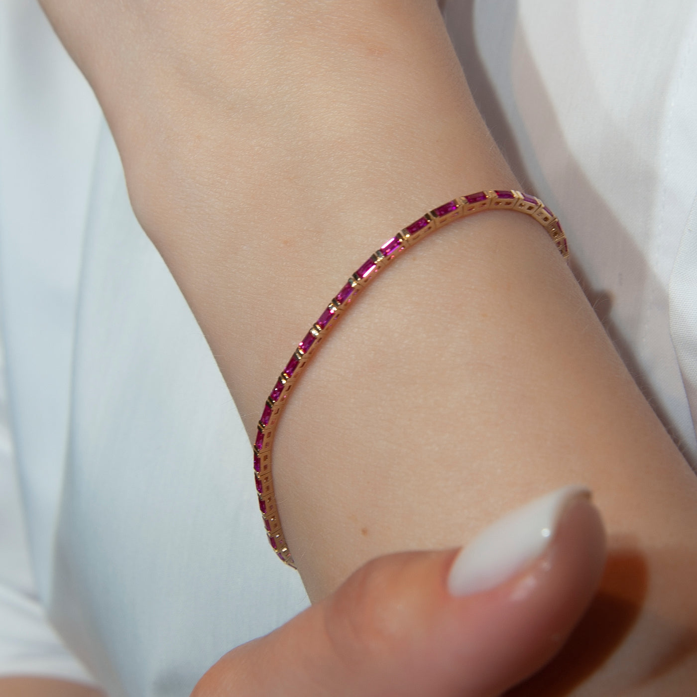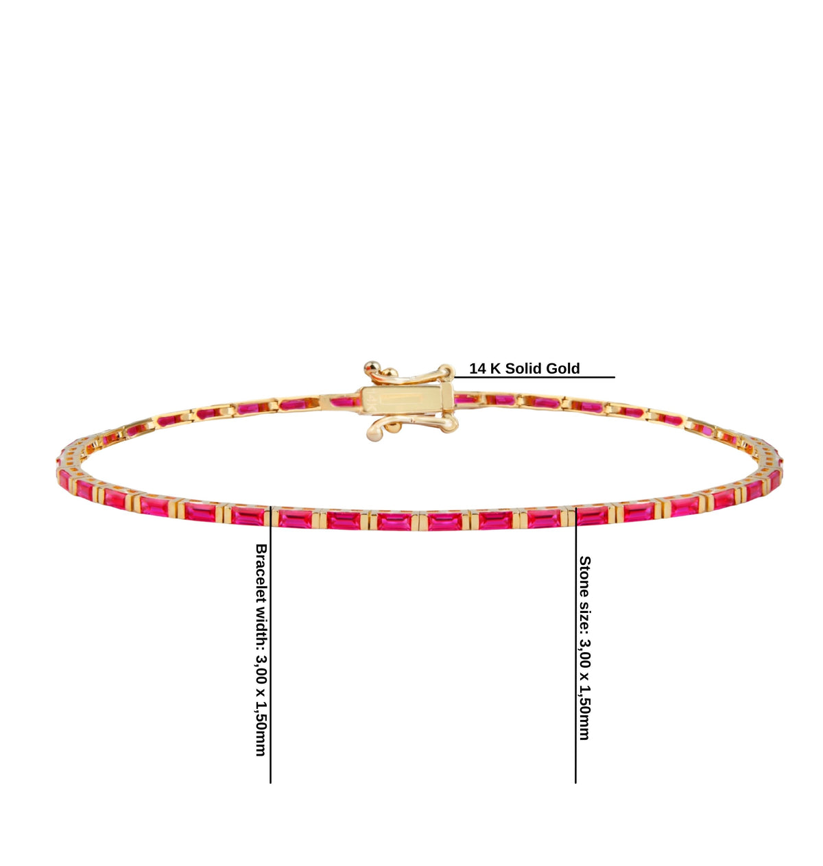 14K Gold Ruby Baguette Tennis Bracelet / Red Gemstone Line Bracelet