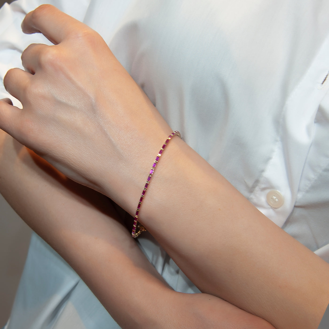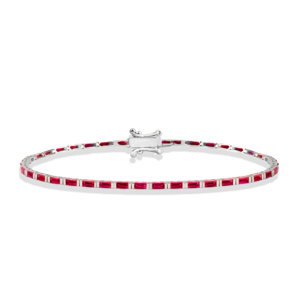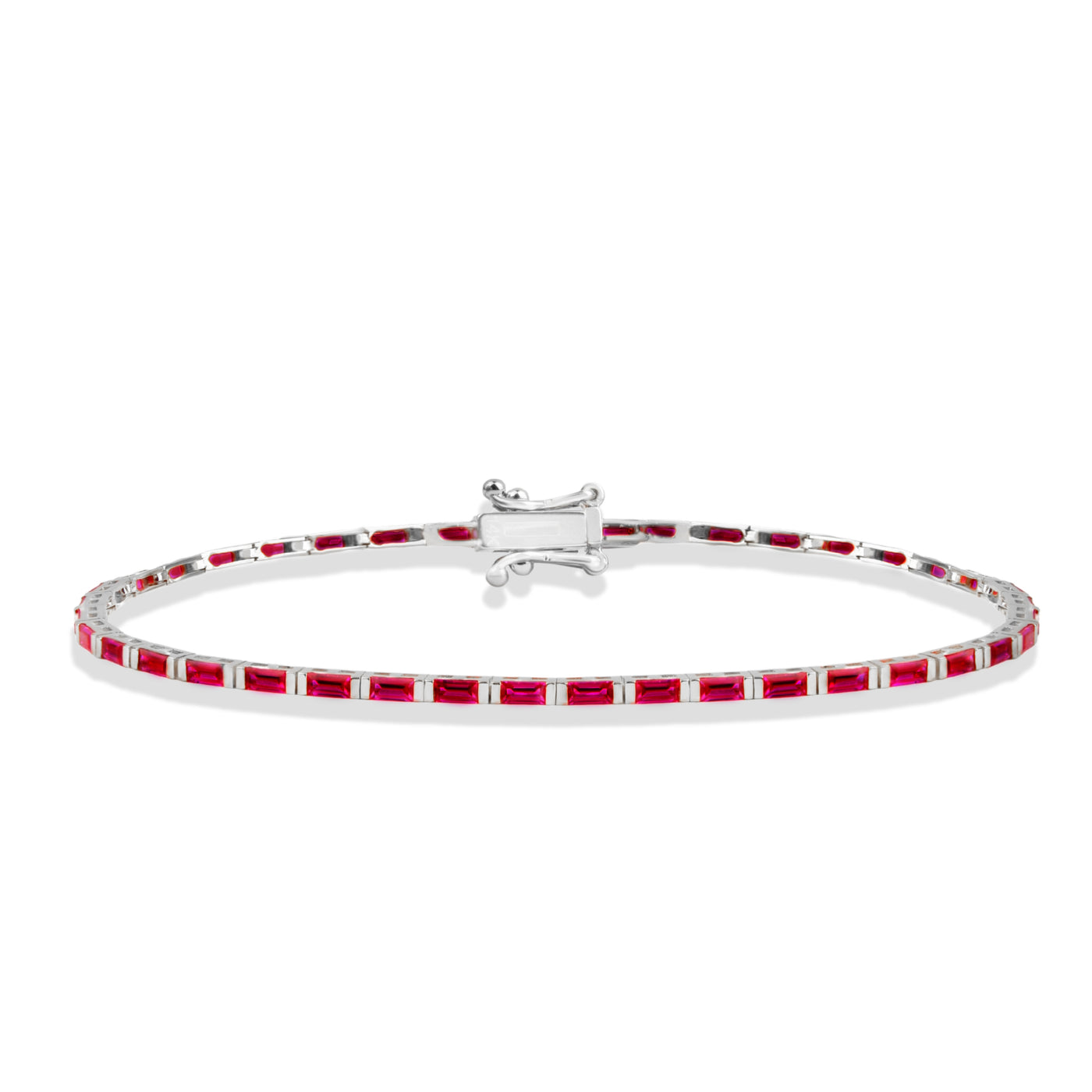 14K Gold Ruby Baguette Tennis Bracelet / Red Gemstone Line Bracelet