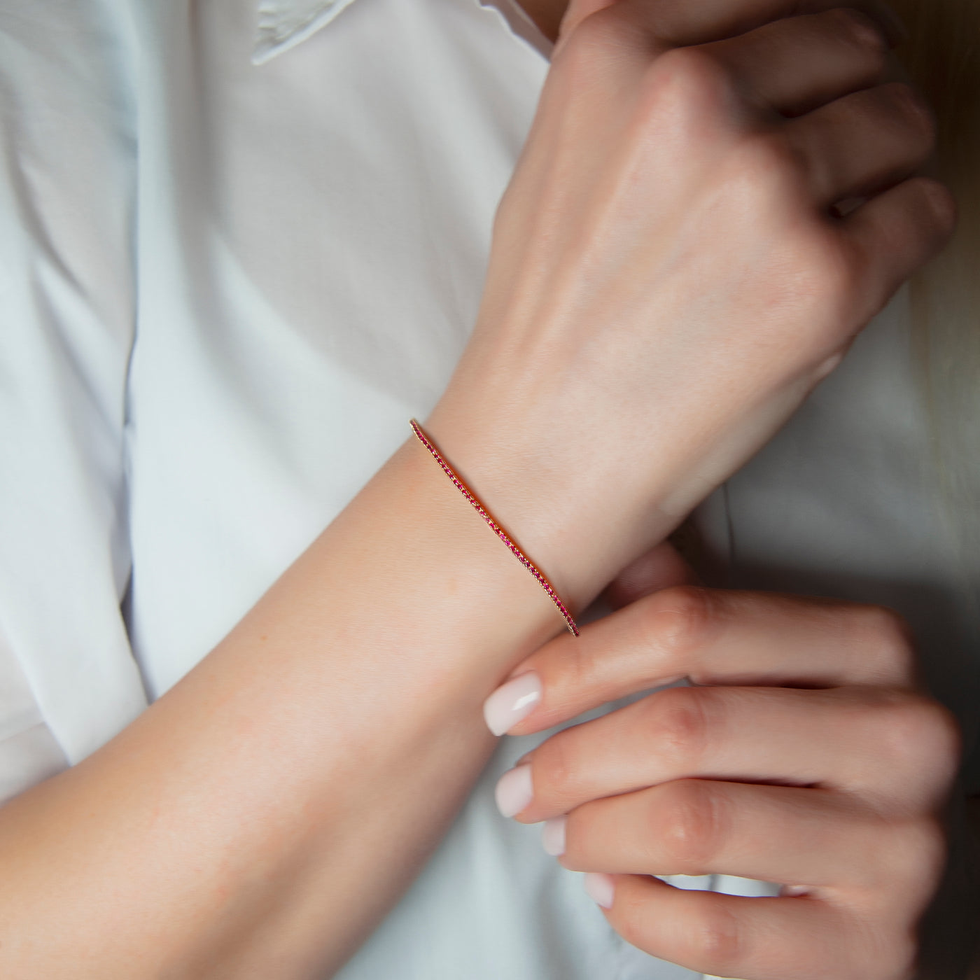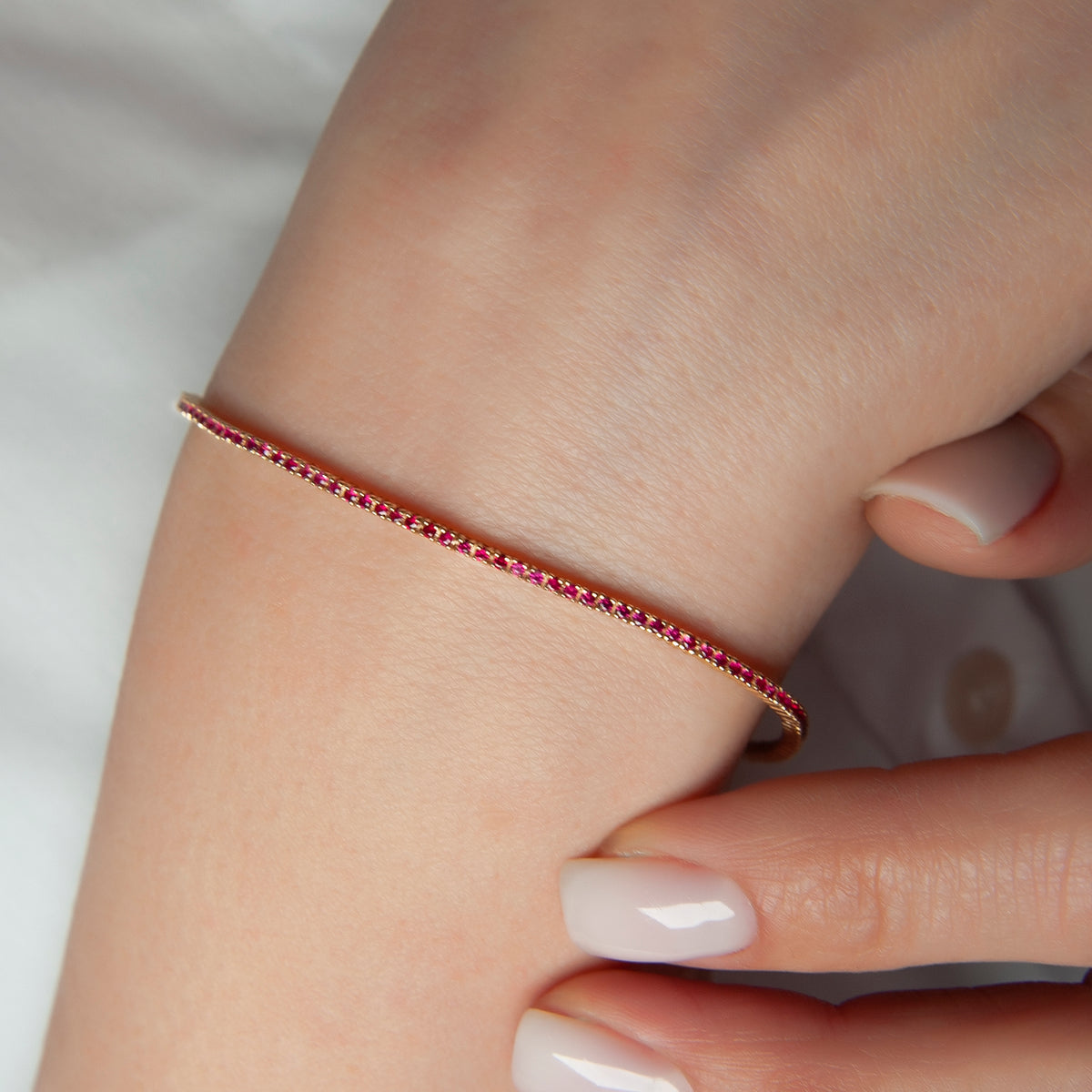 14K Gold Ruby Tennis Bracelet / Dainty Ruby Stone Bracelet