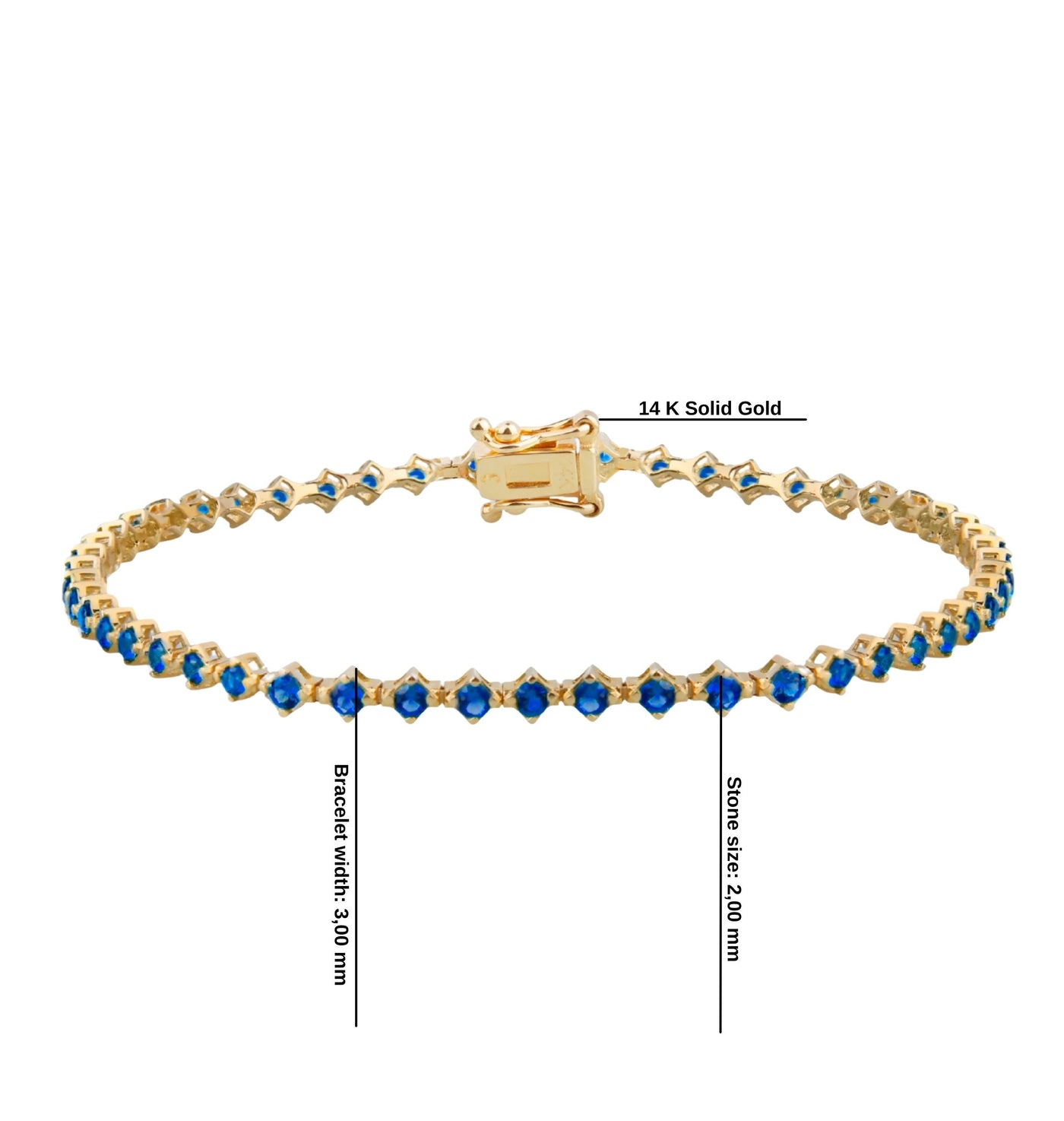 14K Gold Sapphire Tennis Bracelet / Natural Blue Gemstone Jewelry