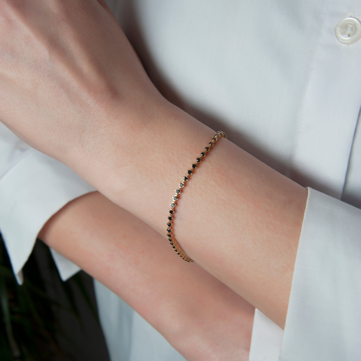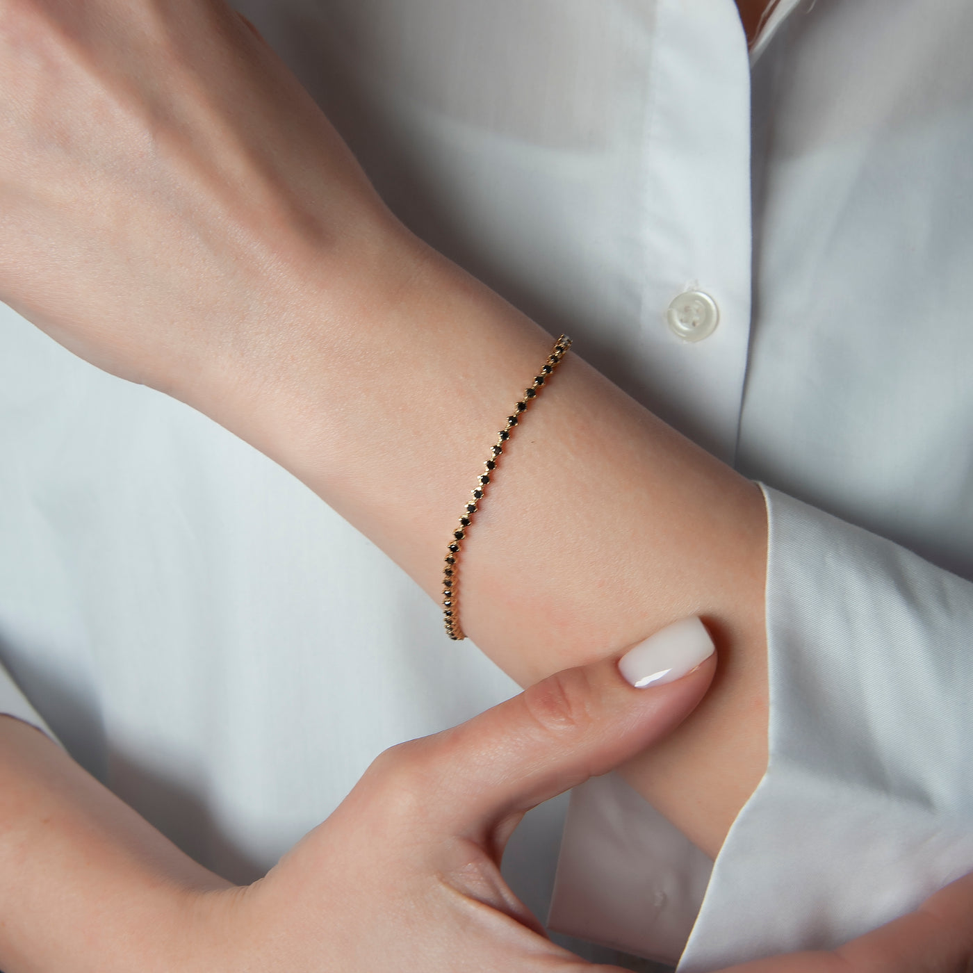 14K Solid Gold Black Diamond Tennis Bracelet