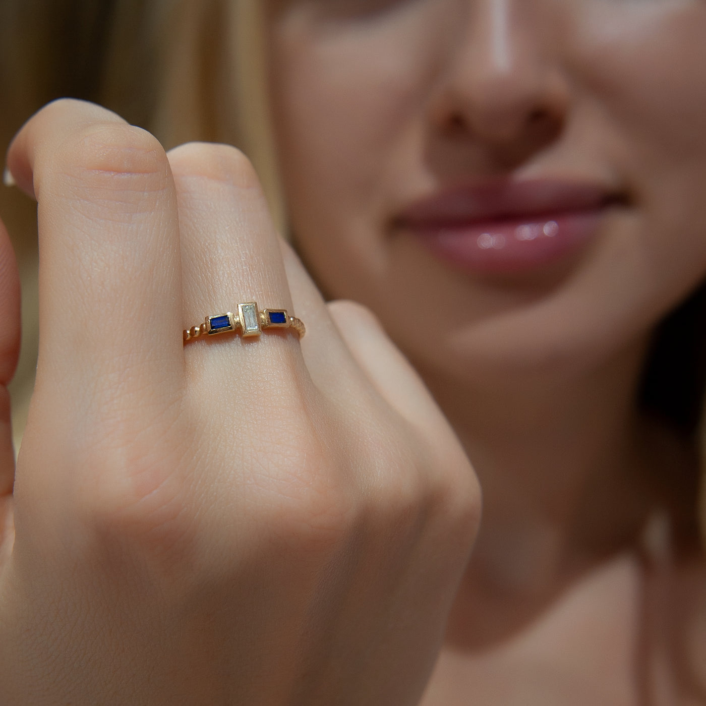 14K Gold Baguette Diamond Sapphire Ring
