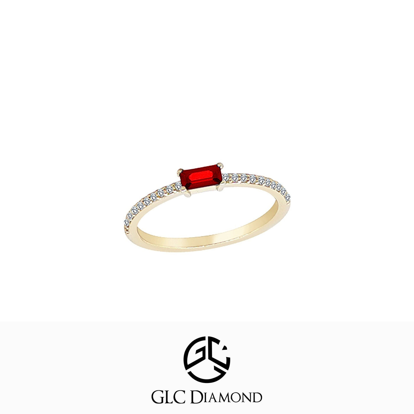 14K Gold Diamond Baguette Ruby Ring
