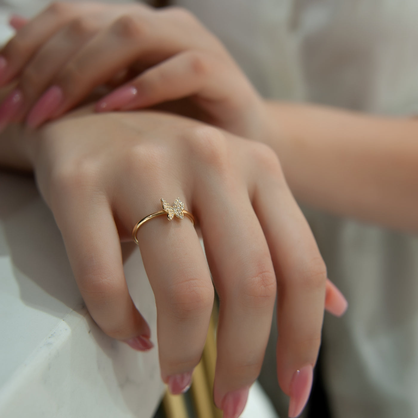 14K Gold Diamond Butterfly Ring