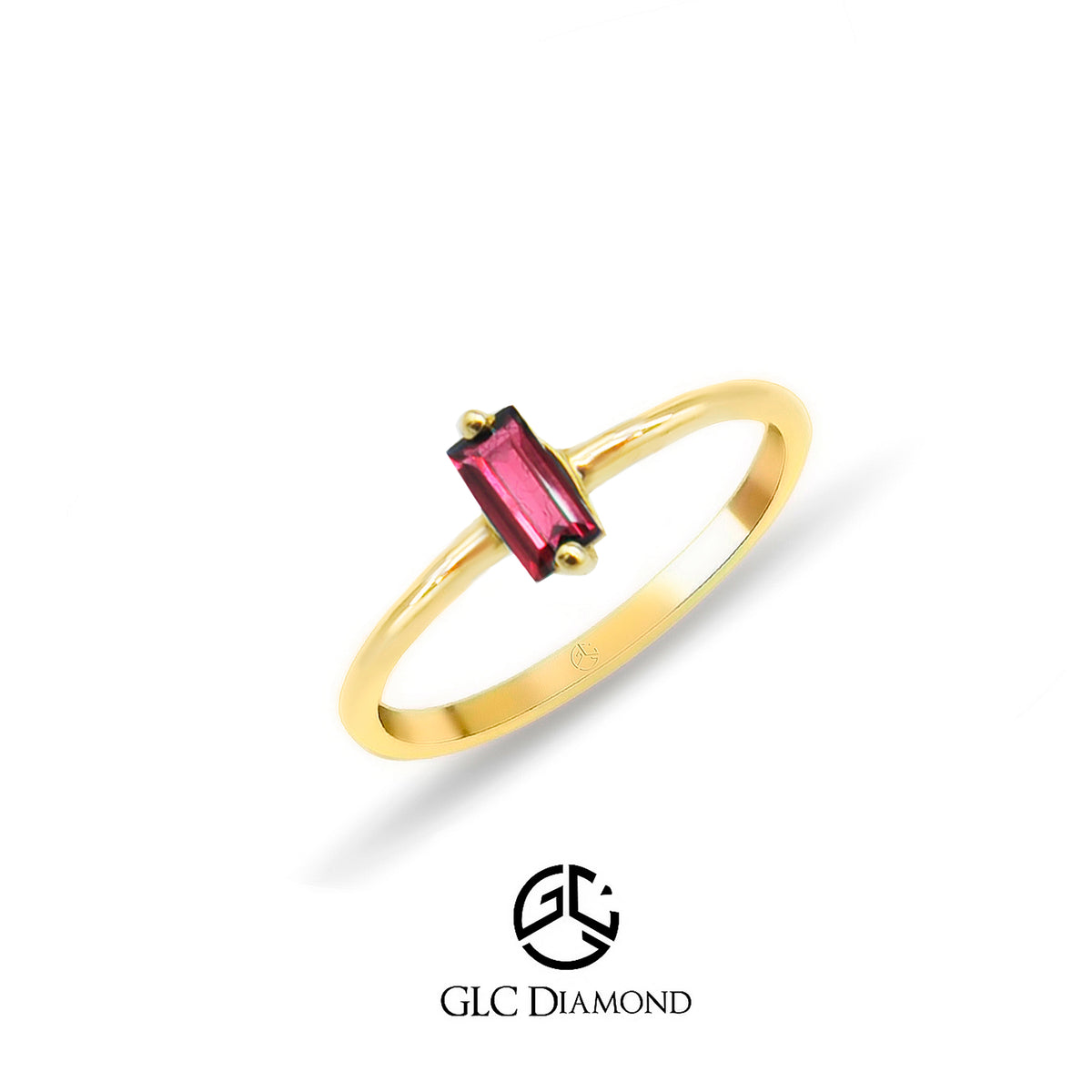 14K Solid Gold Baguette Cut Solitaire Natural Ruby Ring