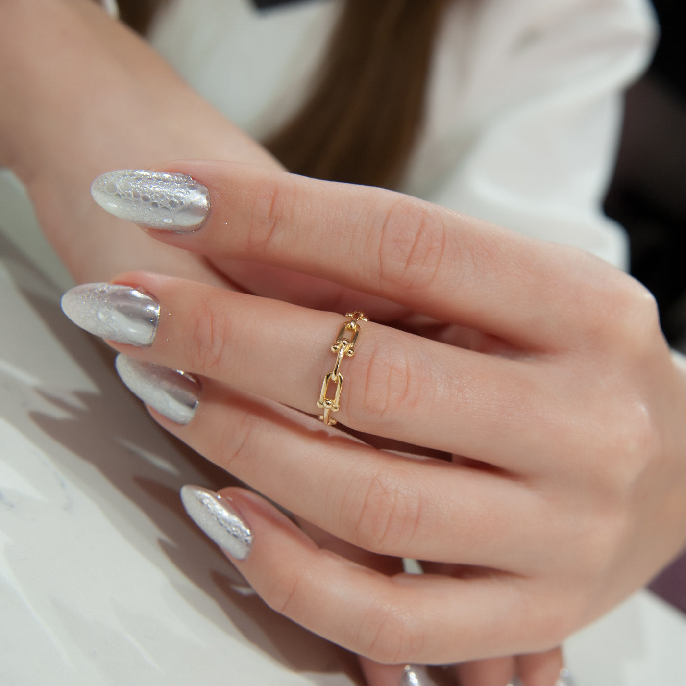 14K Solid Gold Open Link Ring, Gold Chain Ring