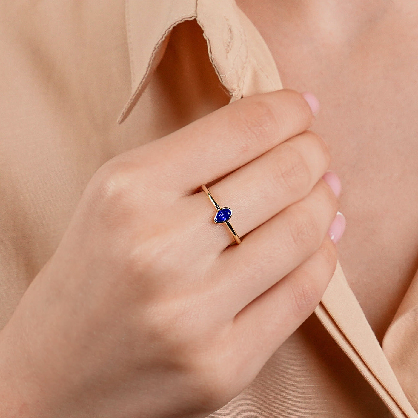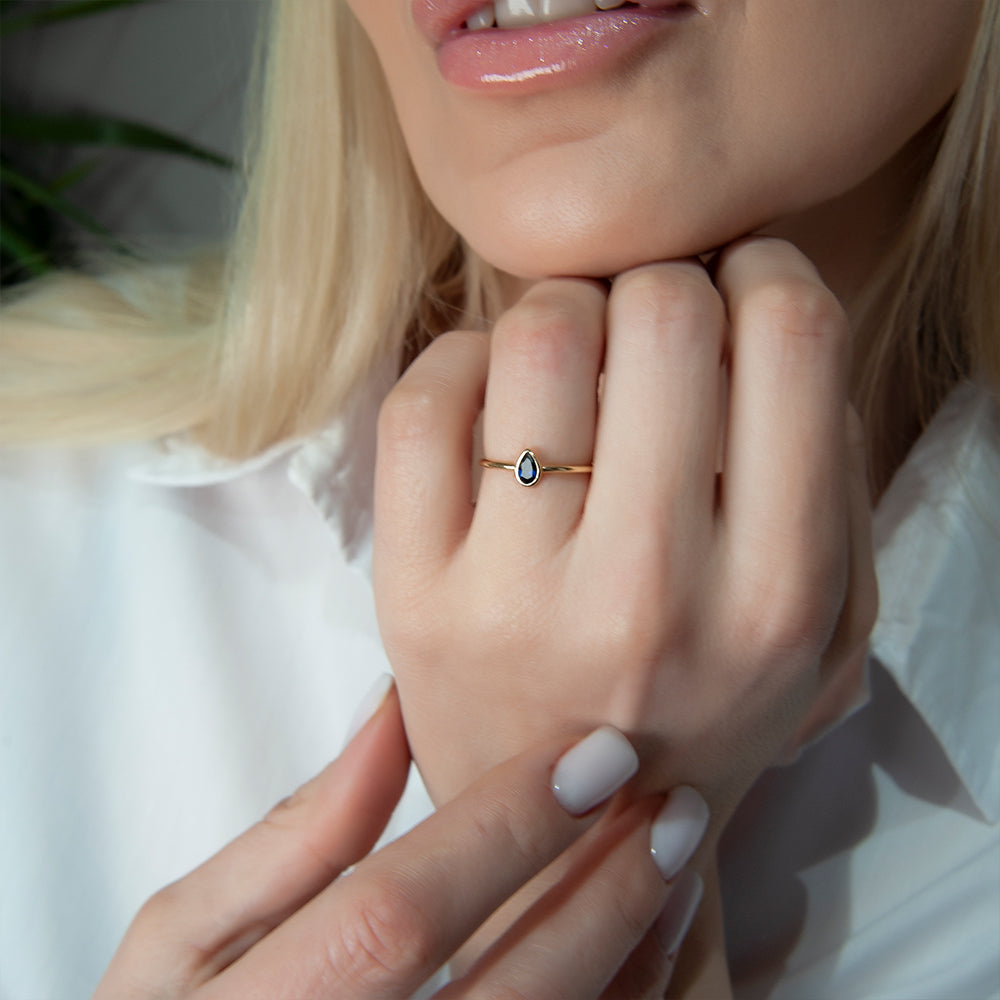 14K Solid Gold Pear Cut Solitaire Sapphire Ring