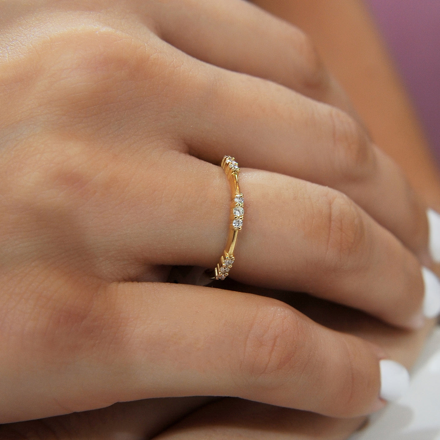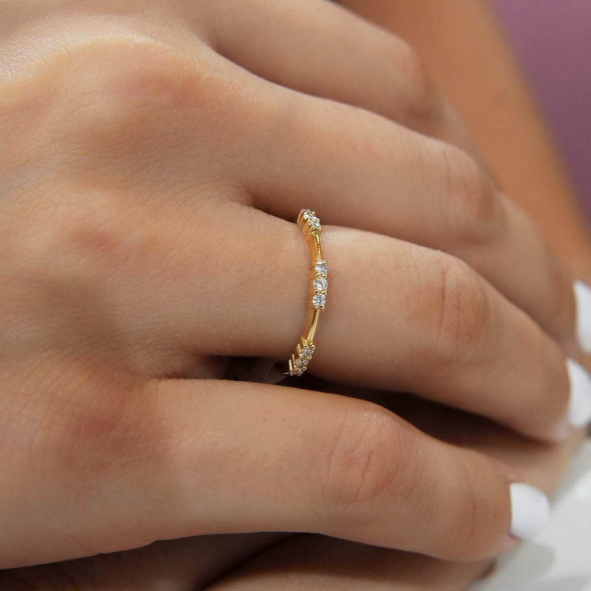 14K Solid Gold Petite Diamond Distance Band