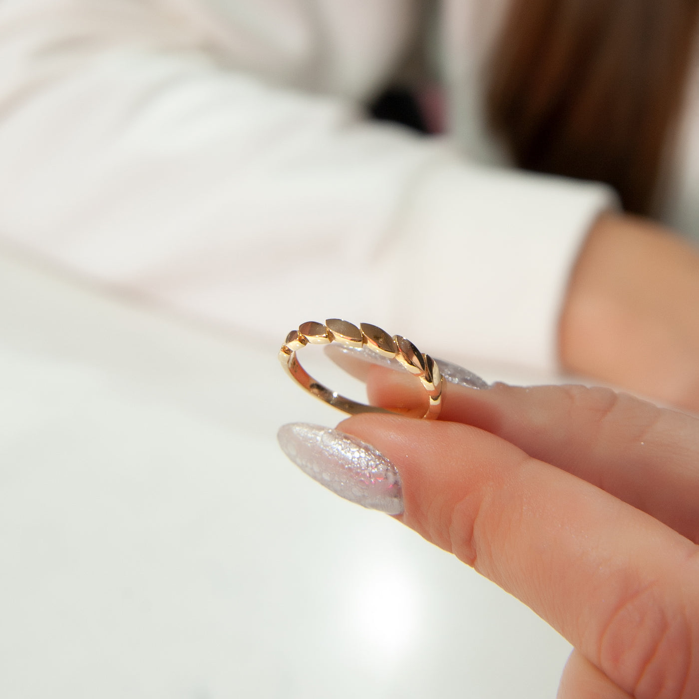 14K Solid Gold Women Ring, Gold Dotted Ring