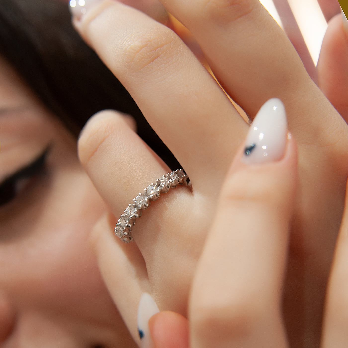 Frequent laying wedding rings! Gorgeous Eternity Anniversary Band. All jewelry is sent in gift packaging. This beautiful set is made with the highest quality. All items in our store are 100 % handmade products. Don’t forget to add the store to your favorites to be informed about discounts. We recommend that you remove your jewelry before doing any activity that may be considered abrasive.